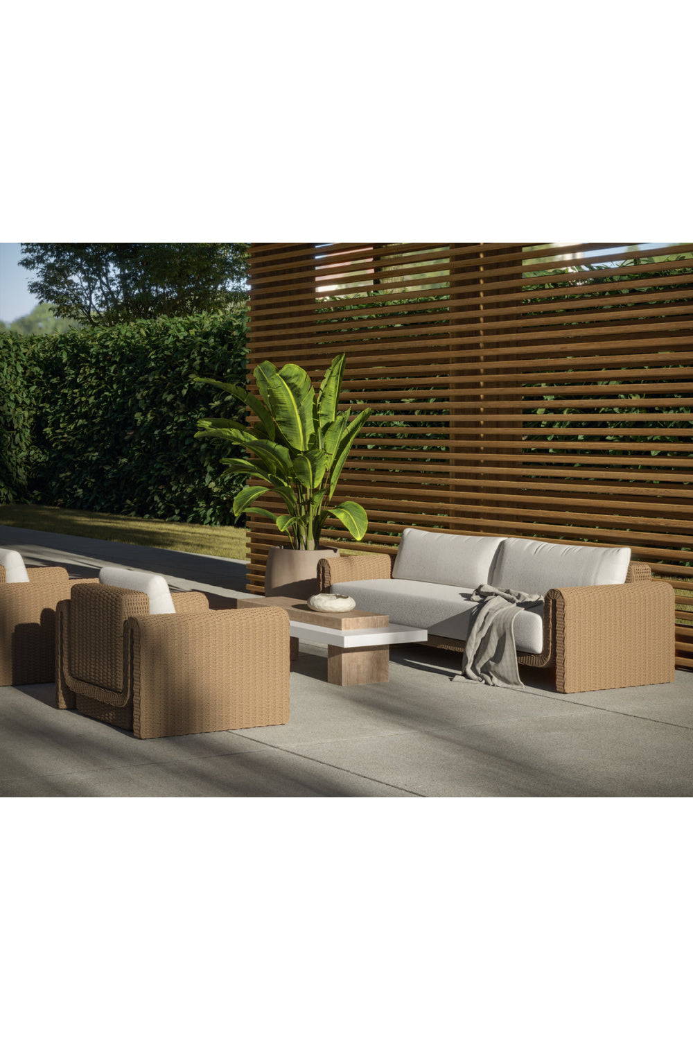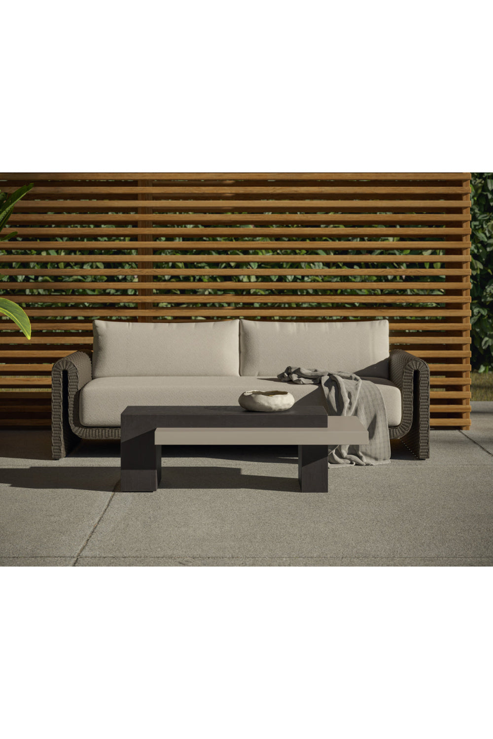 With an eye-catching design, this striking coffee table exudes an impressive contemporary style. Features a base crafted from brown concrete with a fascinating timber effect. Completed with an accenting summer sand concrete slab.