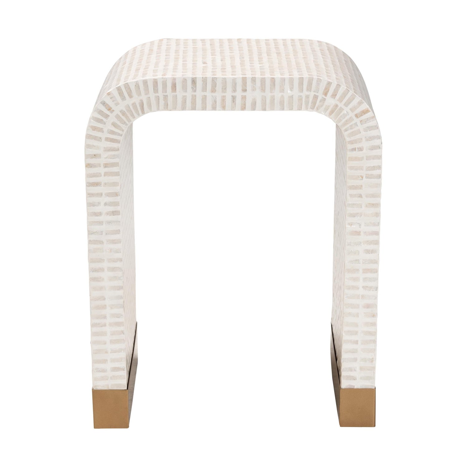 Immerse your space with the vibrant artistry of the stunning Carlyn end table. This coastal piece consists of a sturdy wood frame intricately encased in natural Capiz shell. Its waterfall silhouette exudes soothing geometry fulfilling the needs of any shared space. The Carlyn will arrive fully assembled and utilizes broad, straight legs for excellent stability and support in eye-catching design. Providing a sense of mosaic grace, the Carlyn end table invigorates any setting.