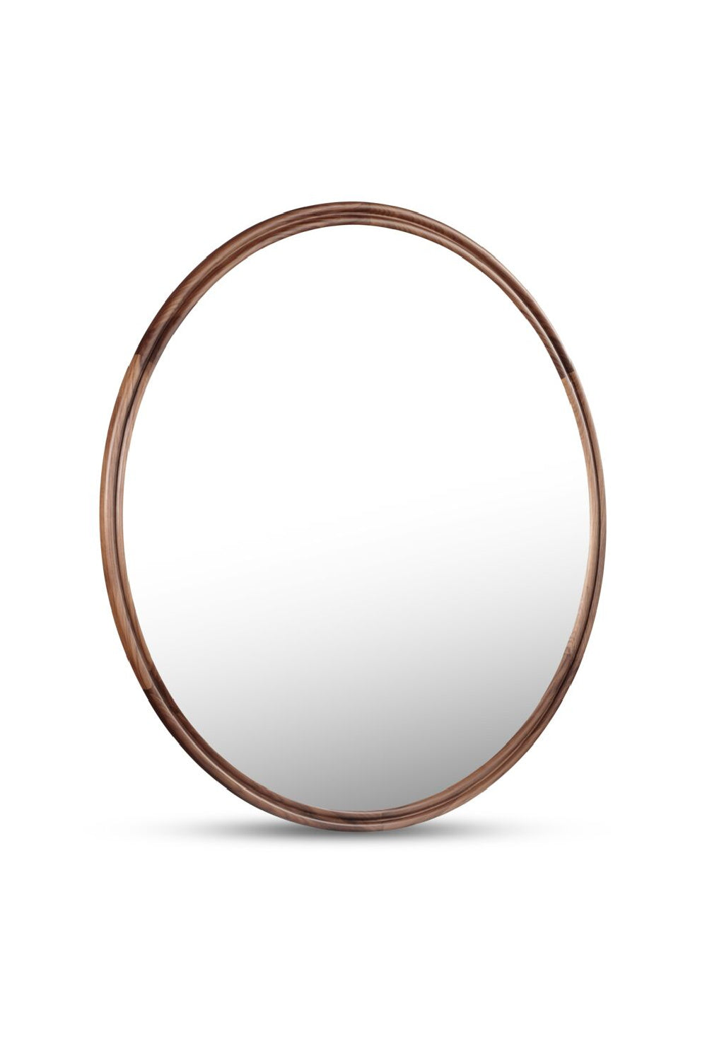 The Alcott round mirror celebrates wood's inherent beauty with a thoughtful double-frame detail. Each mirror showcases the meticulous finish, enhancing the wood's rich, warm tones and creating a serene focal point in entryways, bedrooms, or living areas.