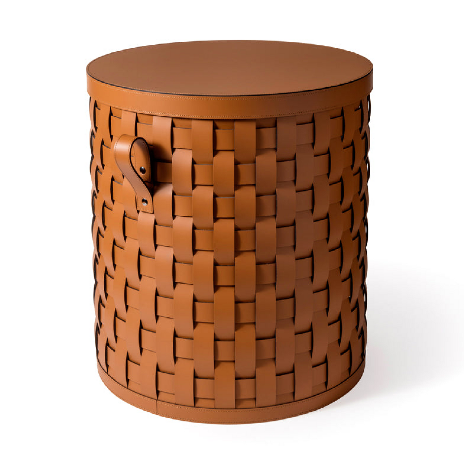 Lidded Woven Leather Short Basket | Pinetti Demetra