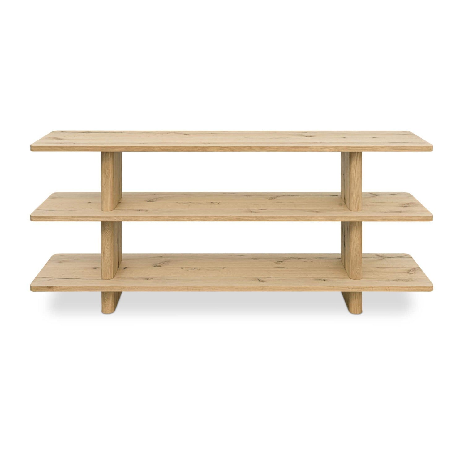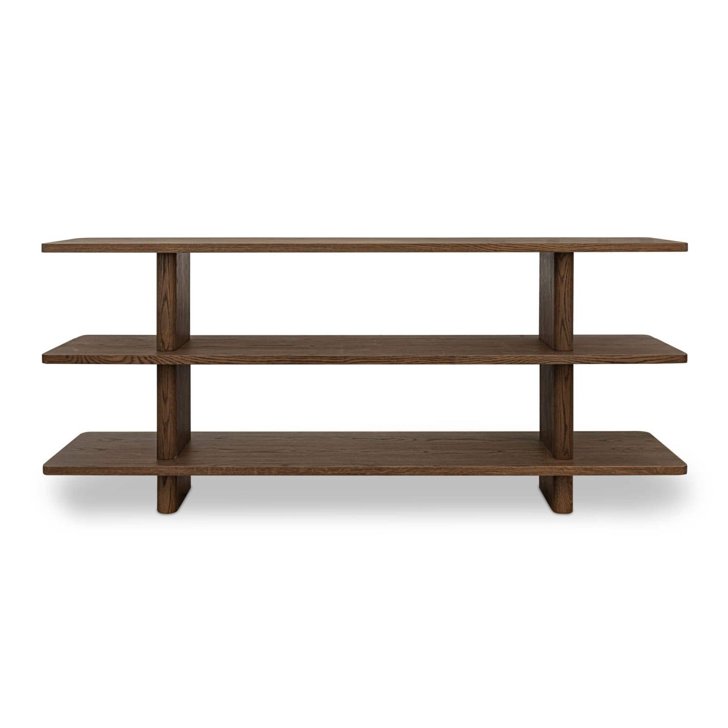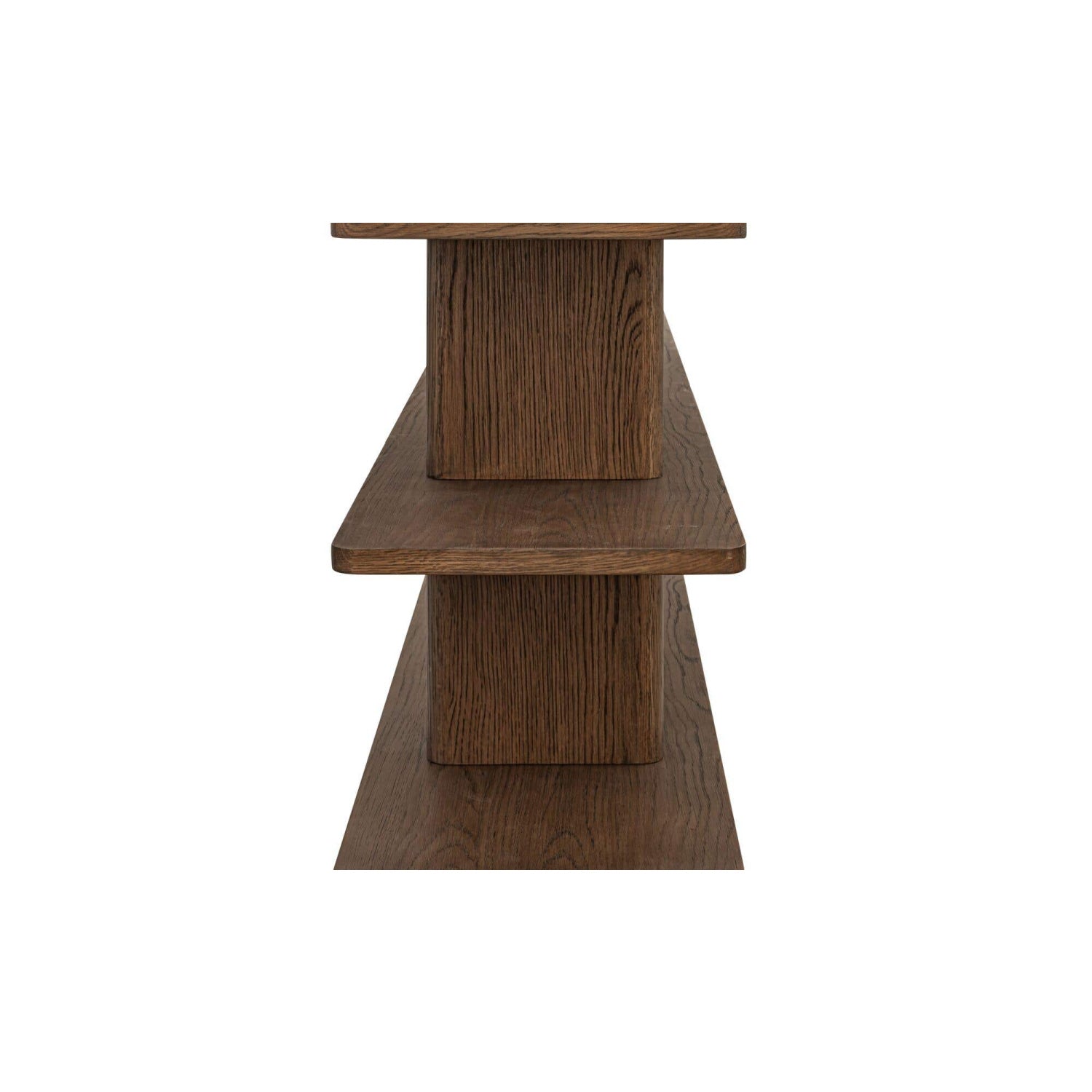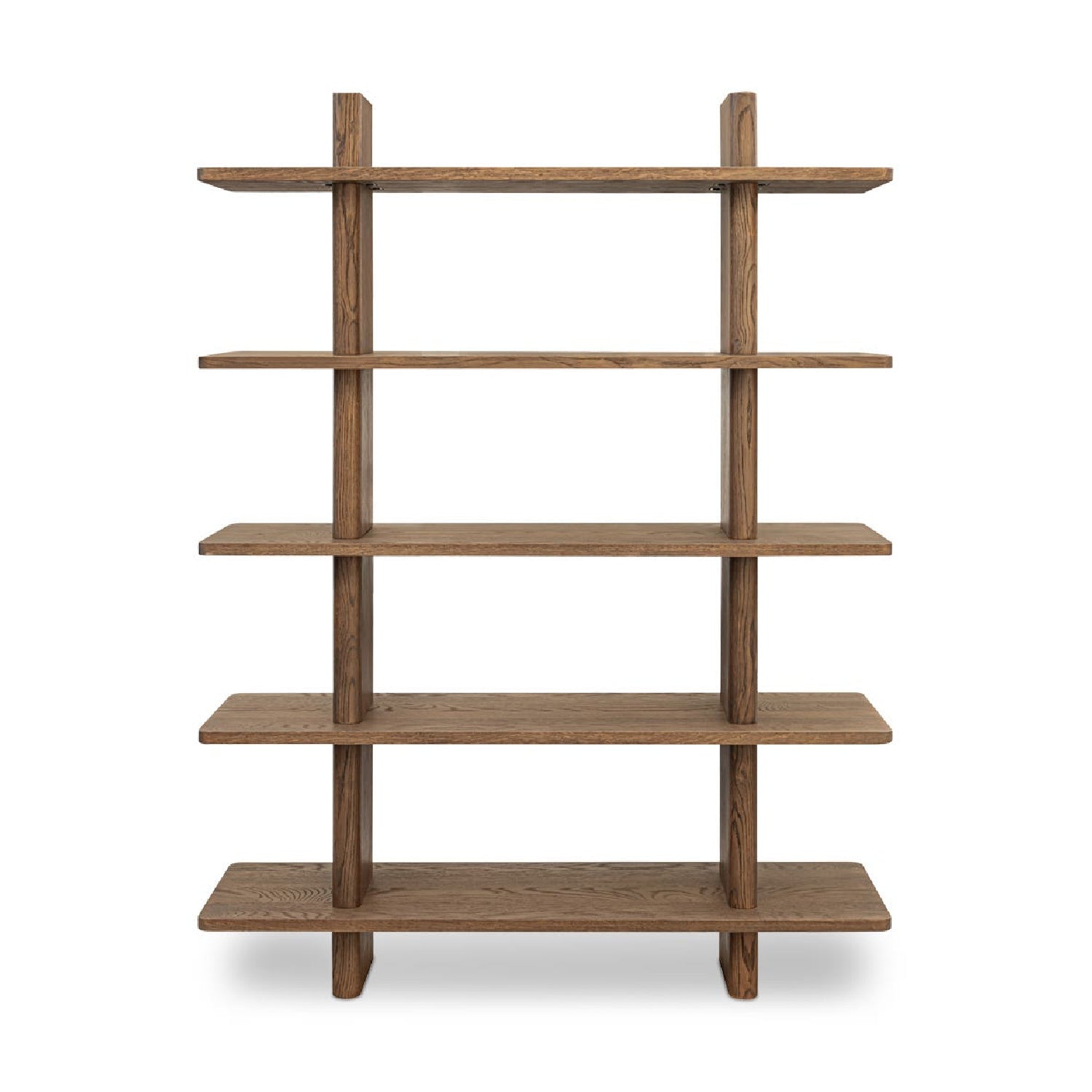 The Casey bookcase embodies contemporary elegance, marrying form and function with understated sophistication. An innovative vertical support with a bullnose edge softens the silhouette, introducing an organic feel to the rectangular shelving.