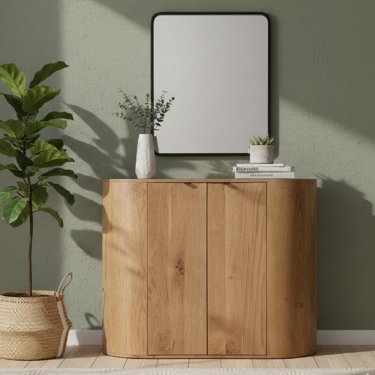 Not your average cabinet—this one curves. The Theo cabinet blends soft, sculptural lines with the grounding warmth of solid oak, designed to bring calm to your space. Behind its clean silhouette are soft-close doors, two roomy shelves, and subtle metal pull tabs that keep the look seamless. Each piece highlights the wood’s natural character. Form meets function—and takes up less visual space while doing it.