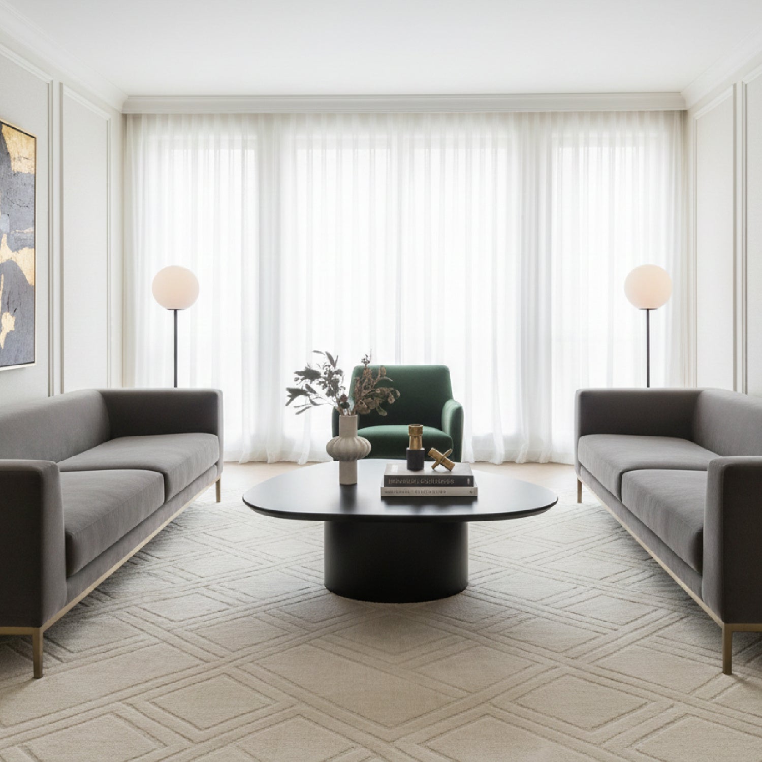 The Eden coffee table features a rounded triangular shape and oval pedestal base, creating a scultural silhouette that exudes modern sophistication. An ivory white and black high gloss finishes this coffee table's surface, reflecting light, brightening and opening up any space.