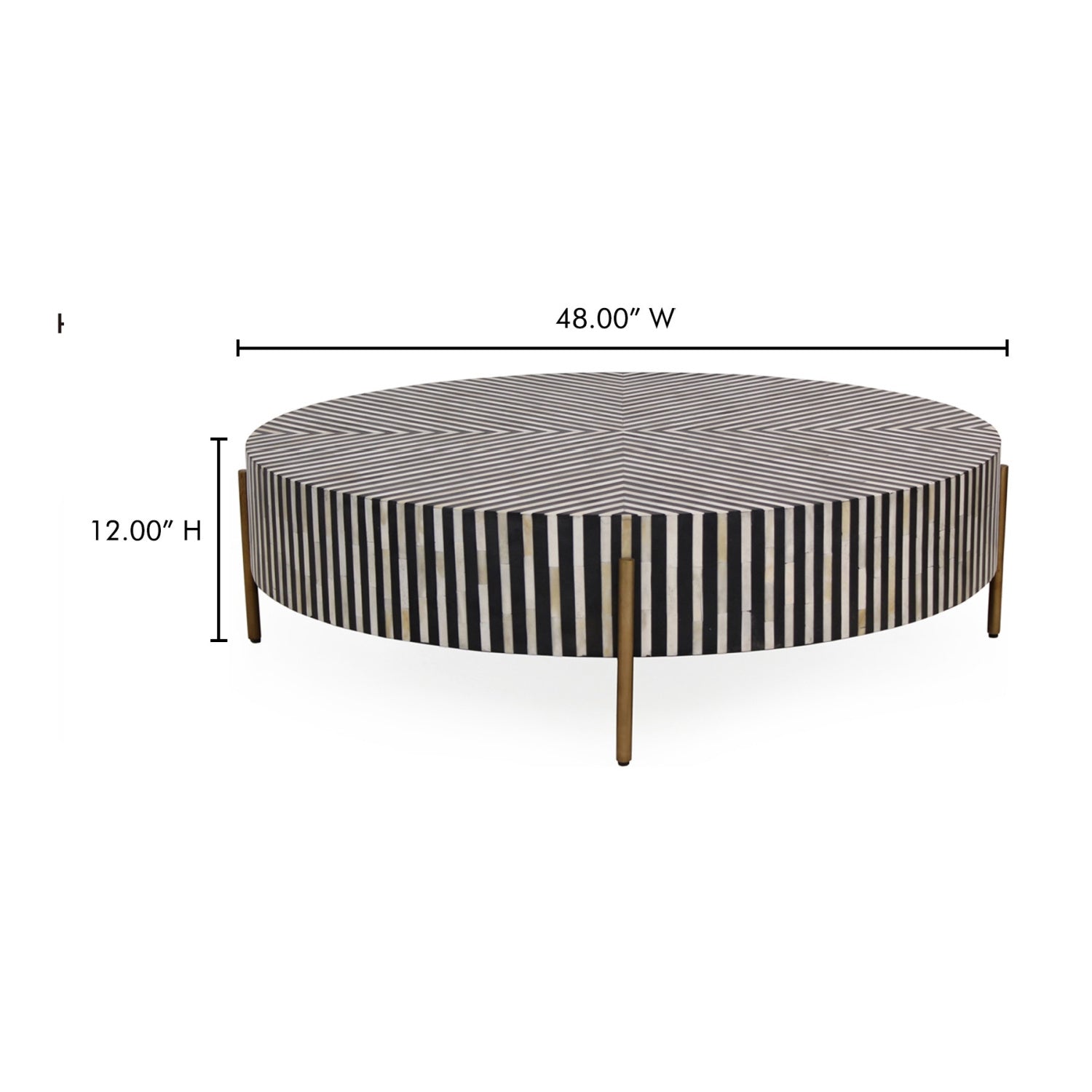 Simplistic and bold, the Chameau coffee table is an exercise in contrast, featuring a hypnotic art deco design. Simple construction and a delicate brass-finished base set off a veneer of white and black camel bone and resin, making a spellbinding visual statement. The Chameau series features a coffee table in three sizes and a side table perfect for any living space.