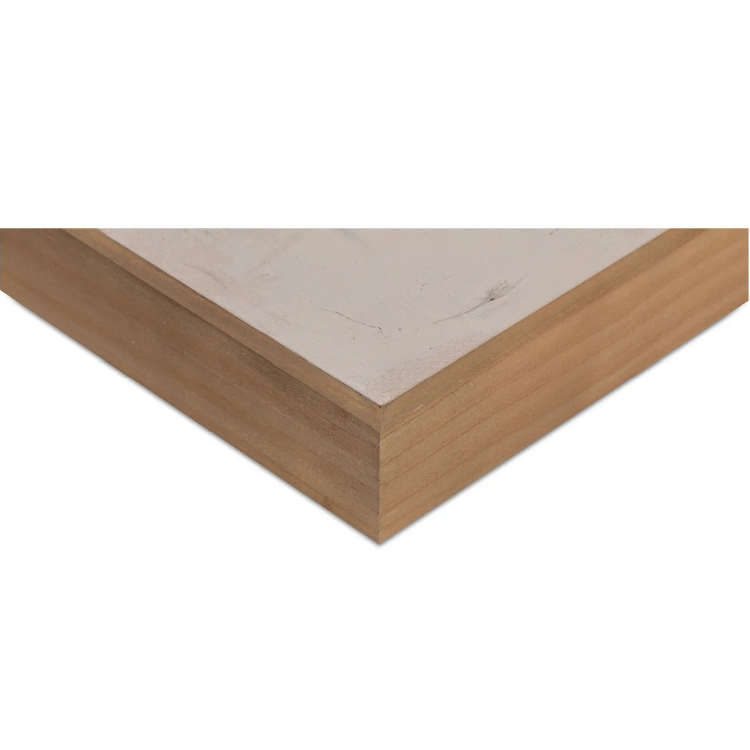 A compelling bloom unfolds in the Caspia framed painting. Thoughtful layers of acrylic paint reveal an abstract floral form punctuated by a striking blue stem. The minimal neutral background evokes organic charm, while a the warm toned frame promotes transitional style.