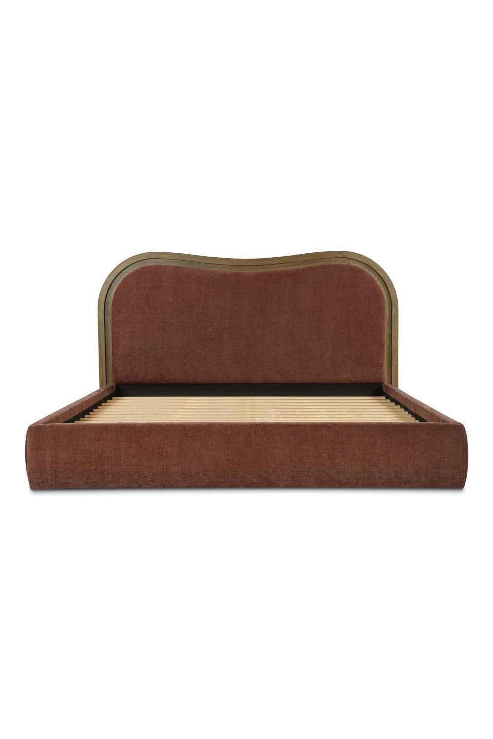 The Camilla bed is our art deco-inspired take on the wave bed. Its solid ash frame exudes warmth with its vivid chestnut color. The upholstered foam and fiber headboard is thoughtfully designed, featuring a stepped-down or inset frame technique that skillfully creates a captivating wave effect.