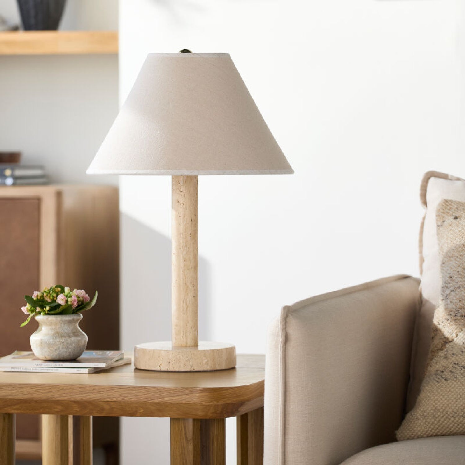 Cream Travertine Accent Table Lamp | Kuda Home Tobin