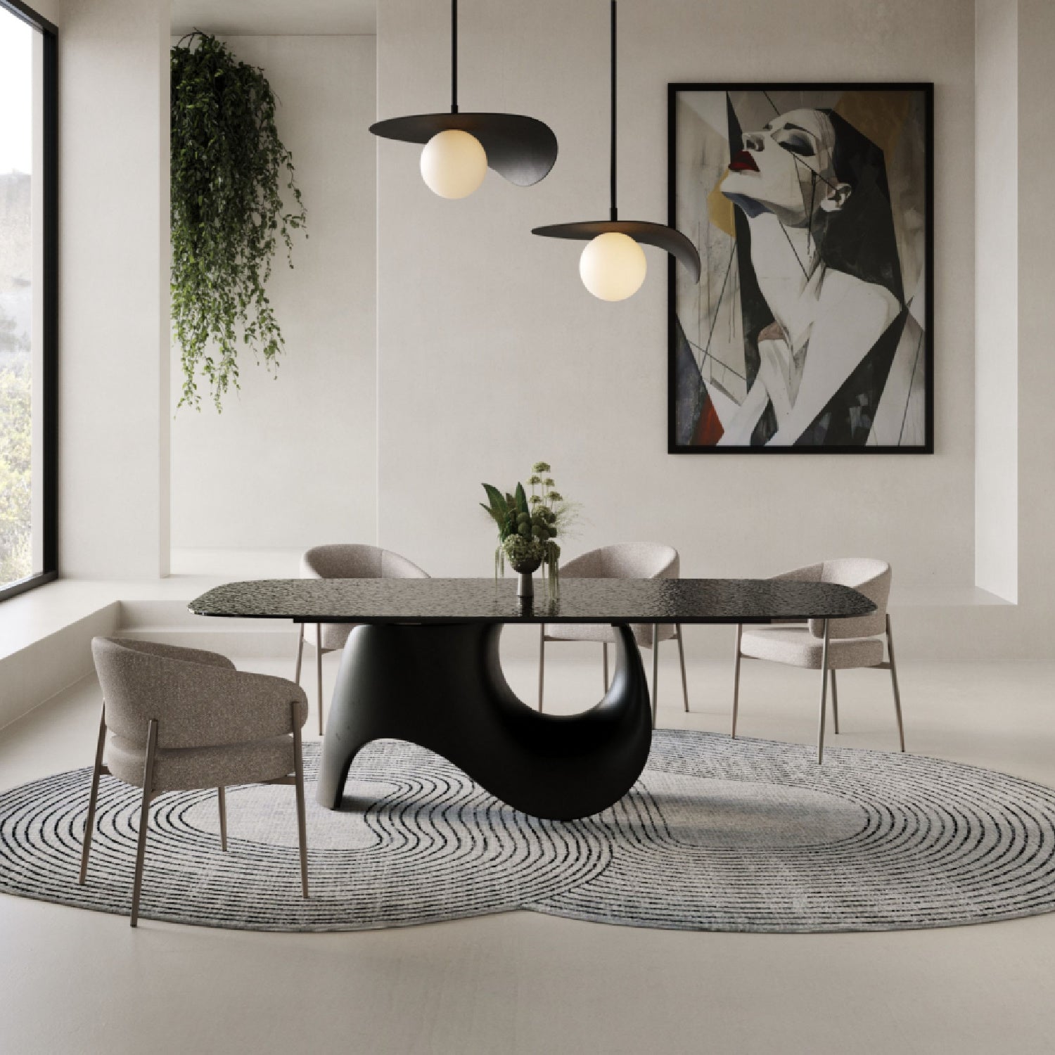 The Modrest Neptune Modern Grey Wave Glass + Black Dining Table showcases a striking contemporary design that elevates any dining space. Featuring a uniquely sculptural black base with a fluid, wave-like form, it perfectly supports the textured grey glass top. This table artfully combines elegance and modernity, making it a captivating centerpiece. The table accommodates up to 8 people, offering ample space for gatherings. Its bold aesthetic and functional design make it an ideal choice for stylish dining experiences.
