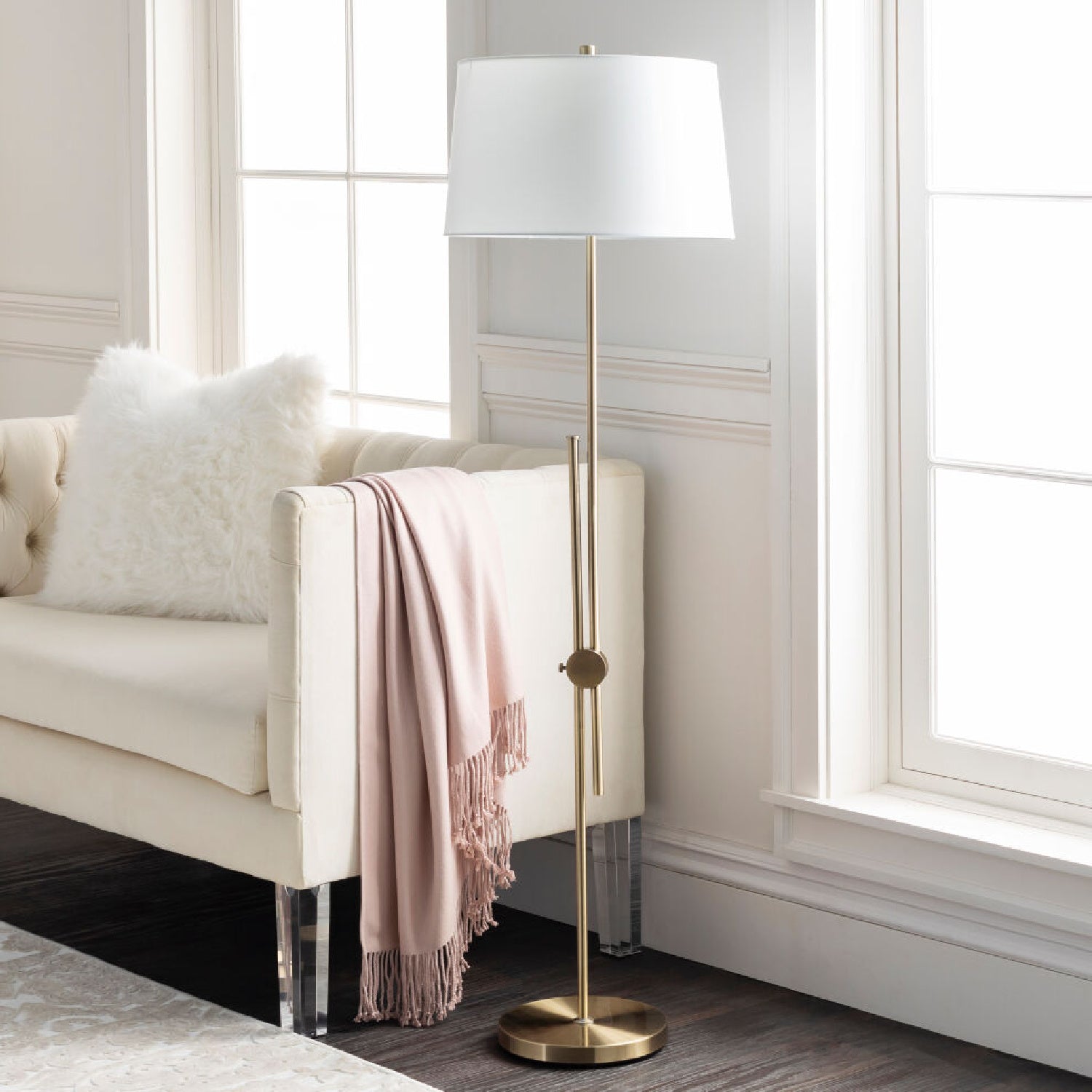 Illuminate your living space with the Jace Floor Lamp. Featuring a modern style and made of polyester and metal, this lamp stands 64 inches tall and adds warmth to any room. Easy to care for, simply wipe clean with a dry cloth to keep it looking fresh. Perfect for bringing light and style into your home.