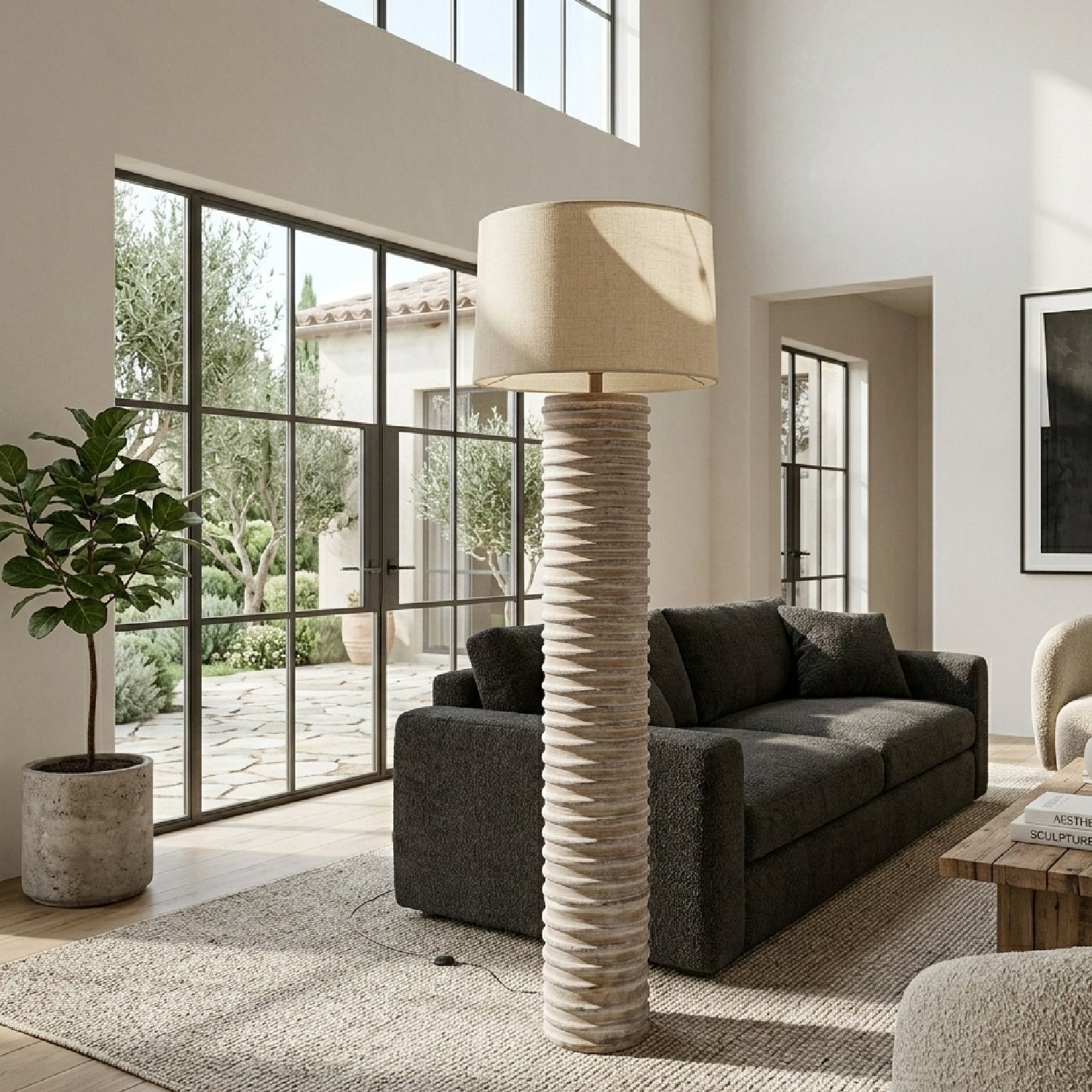 Beige Linen Accent Floor Lamp | Kuda Home Nexum