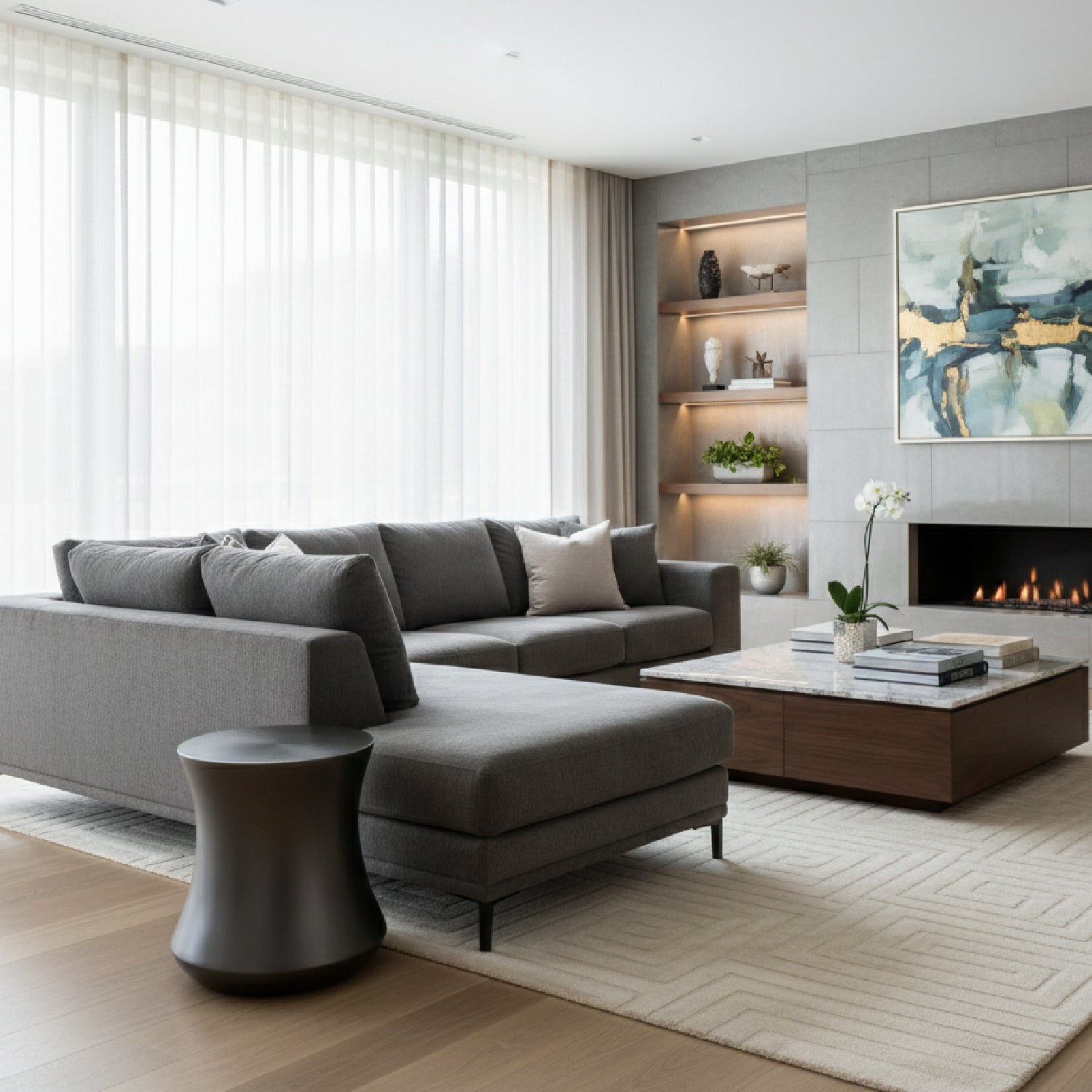 Antique Gray Fiberglass End Table | OROA Modern Airdrie