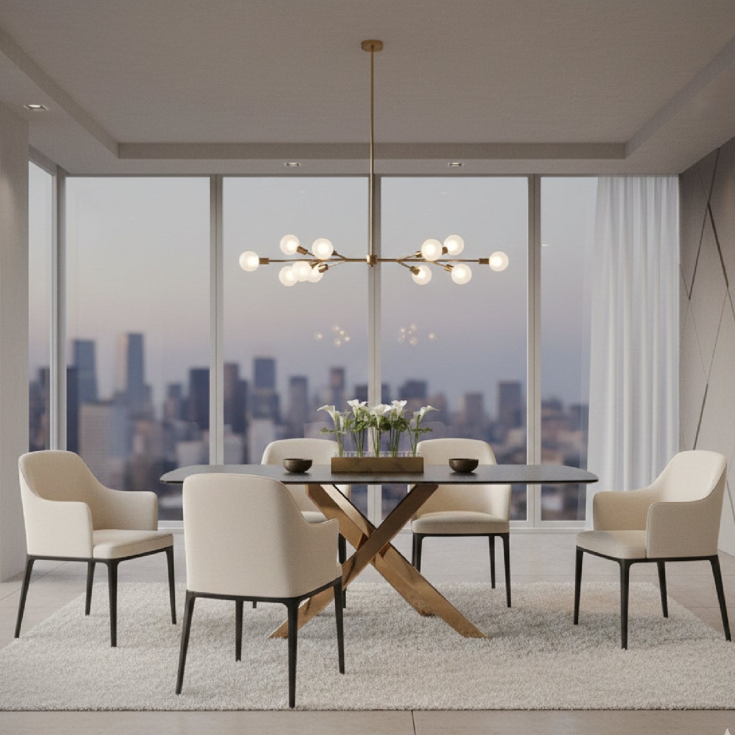 The Modrest Pyrite dining table features a stunning brown glass top with a textured surface that exudes elegance. Its eye-catching rose gold base showcases a modern, geometric design with interlocking shapes that adds a sophisticated touch to any dining space. The combination of rich brown and luxurious rose gold creates a warm and inviting atmosphere, perfect for entertaining guests. This table accommodates up to 6 people, making it an ideal centerpiece for gatherings.