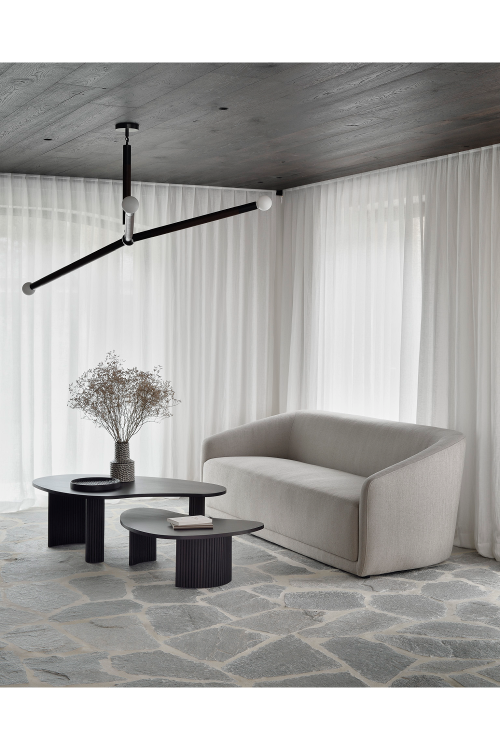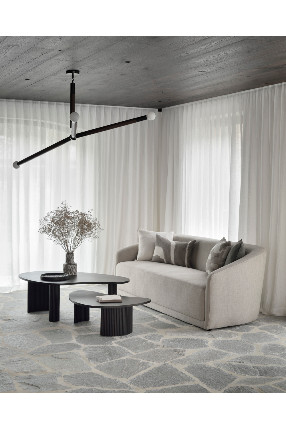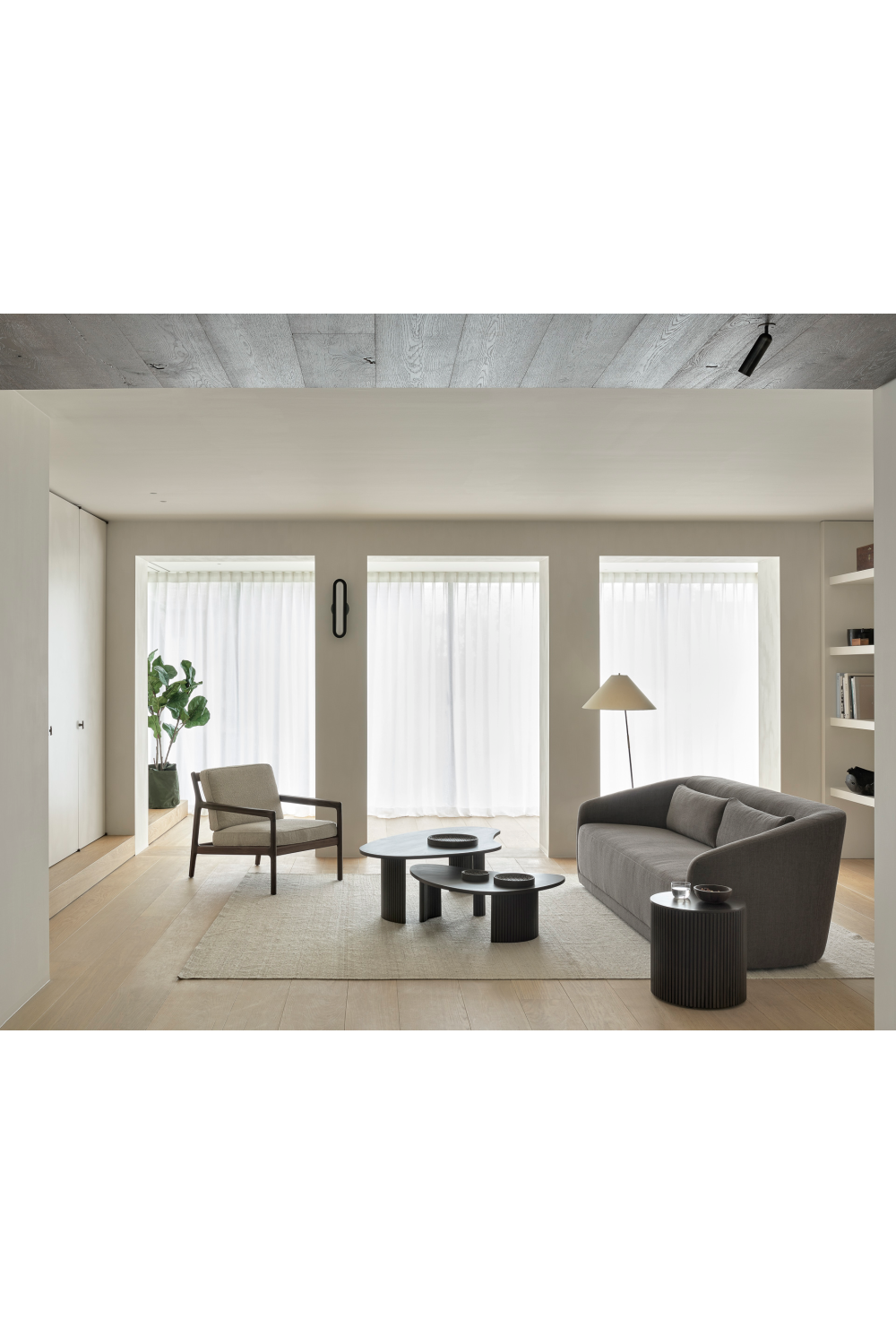 Experience the captivating charm of the Varnished Mahogany Coffee Table by Ethnicraft. Meticulously crafted from dark brown tainted mahogany, this Boomerang table features a playful pebble shape resting upon a glossy varnish-finished base. Arrange the two sizes together to create a captivating focal point or let it stand alone as a stunning statement in any living area.