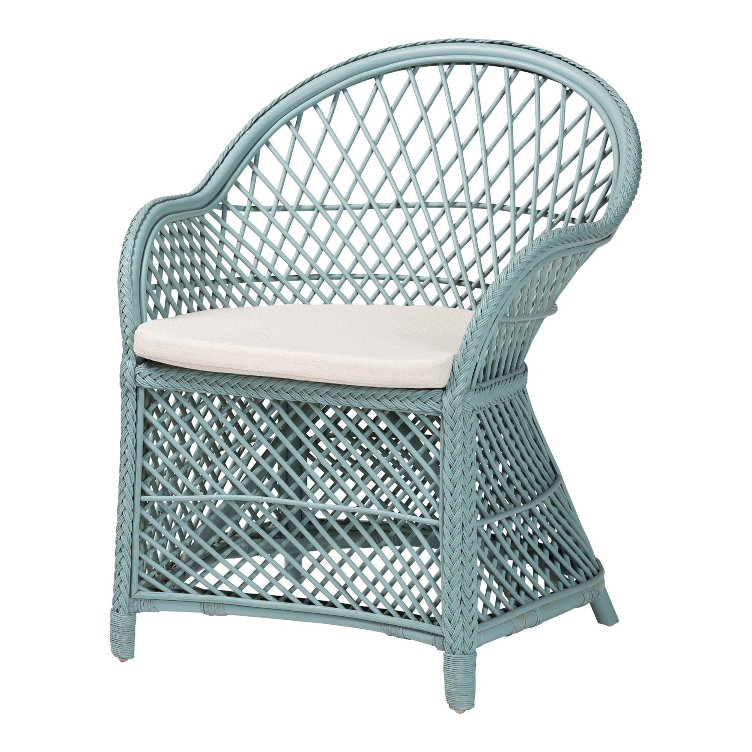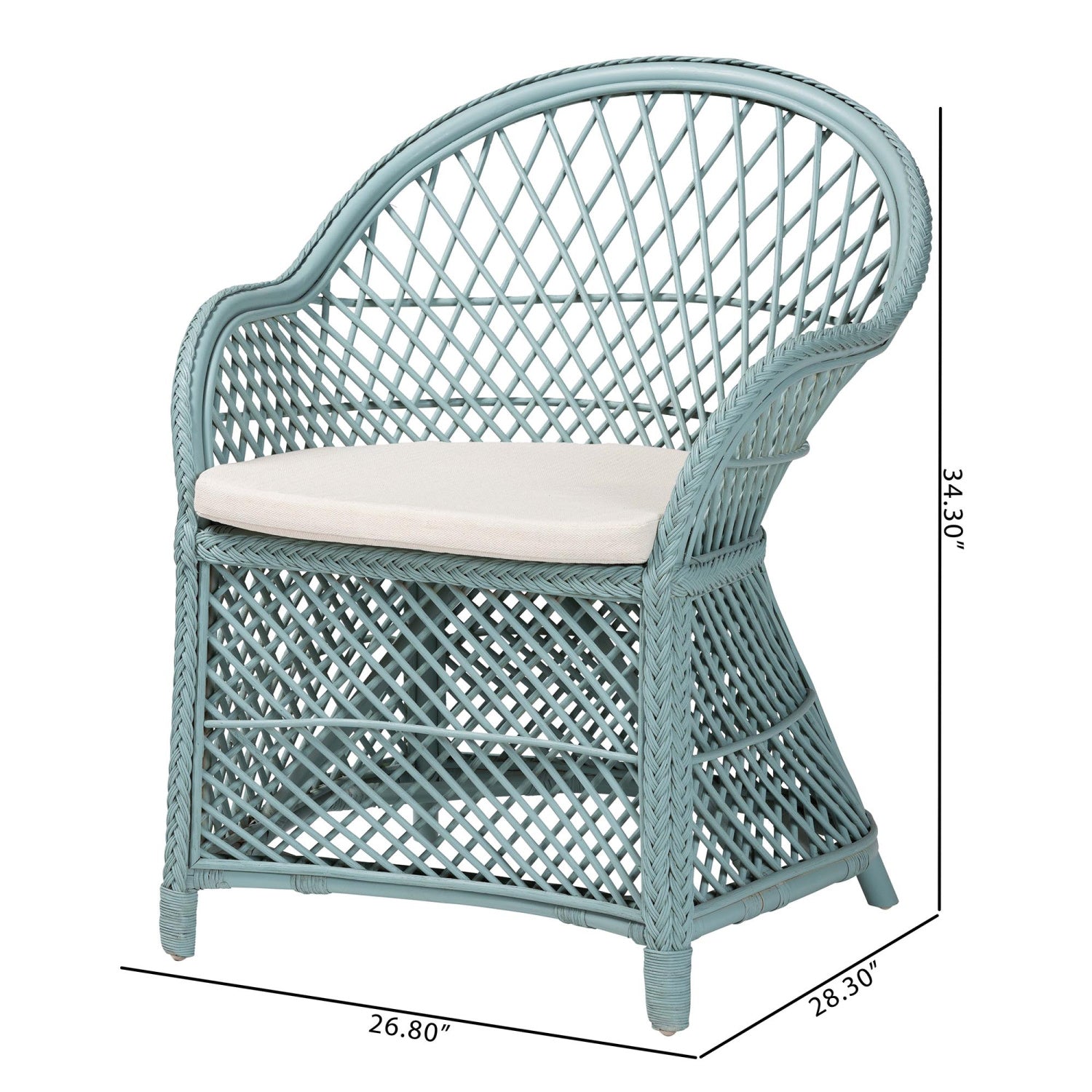The elegance of exotic bliss is captured in the beauty of the Casilda arm chair. Handcrafted in Indonesia, this bohemian piece consists of natural rattan skillfully produced by expert artisans. The rounded back gently curves around the seat to form cozy armrests while an outline of braided rattan distinguishes the piece with rustic majesty. The Casilda will arrive fully assembled and is fitted with a removable seat cushion padded with plush foam and upholstered in soft fabric. Latticed rattan pole forms the frame and skirt of the piece, making the Casilda arm chair a remarkable addition to any setting.