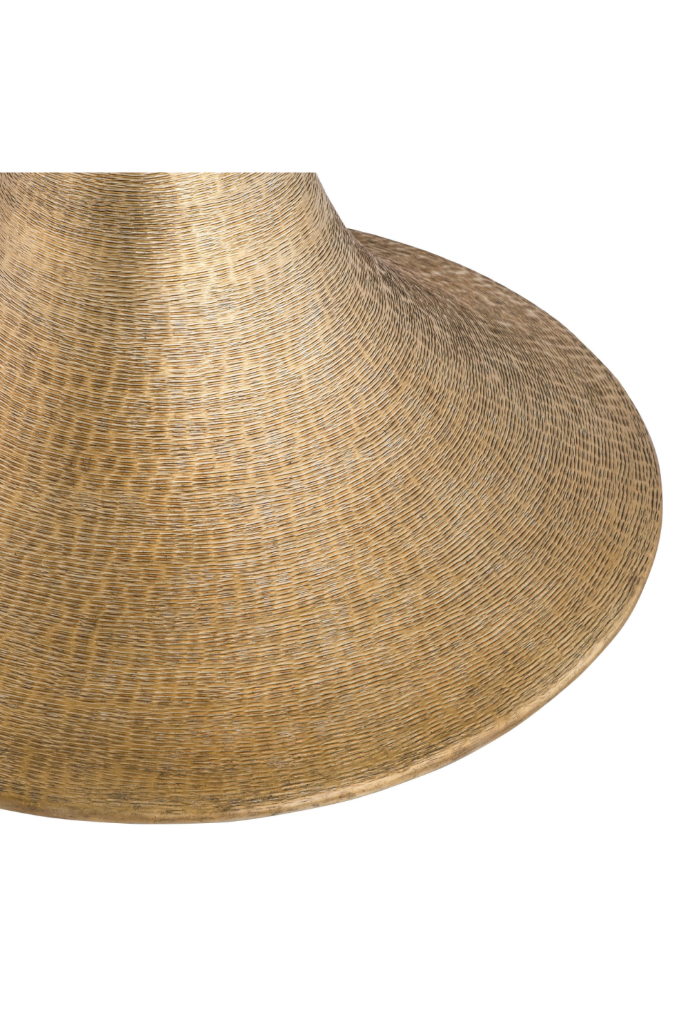 Give your decor a Mid-Century Modern appeal with the stunning oak veneered Melchior Dining Table that features an hourglass-shaped base with a brushed brass finish. As the beautiful herringbone pattern of this round dining table shows, veneers are very suitable for marquetry. High-quality veneer lasts longer than solid wood, which warps or cracks over time.