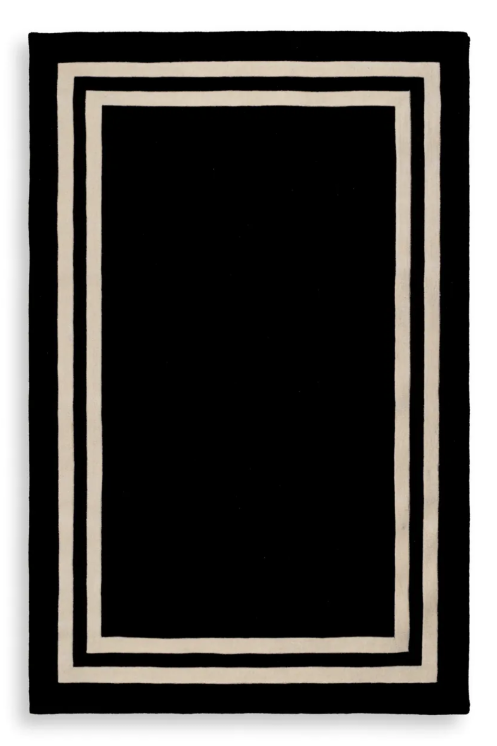 The beautiful black and off-white Celeste Carpet instantly enhances the overall look and feel of your décor. This hand-tufted rug comprises 100% New Zealand wool pile and offers comfort and durability.