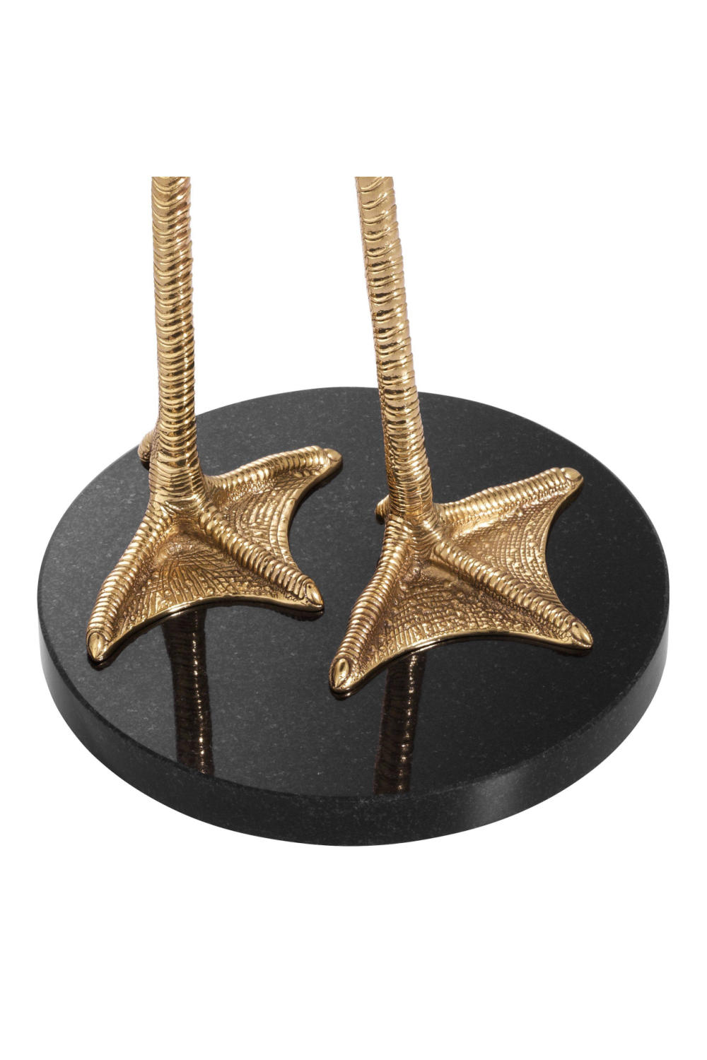 With flamingo leg-inspired footing in polished brass, the Bird Leg Side Table is a unique addition to your living space. Featuring a round black marble top and black granite base it serves as an exquisite accent table or even nightstand! The Eichholtz Lagoon piece gives your home the statement piece you have been looking for.