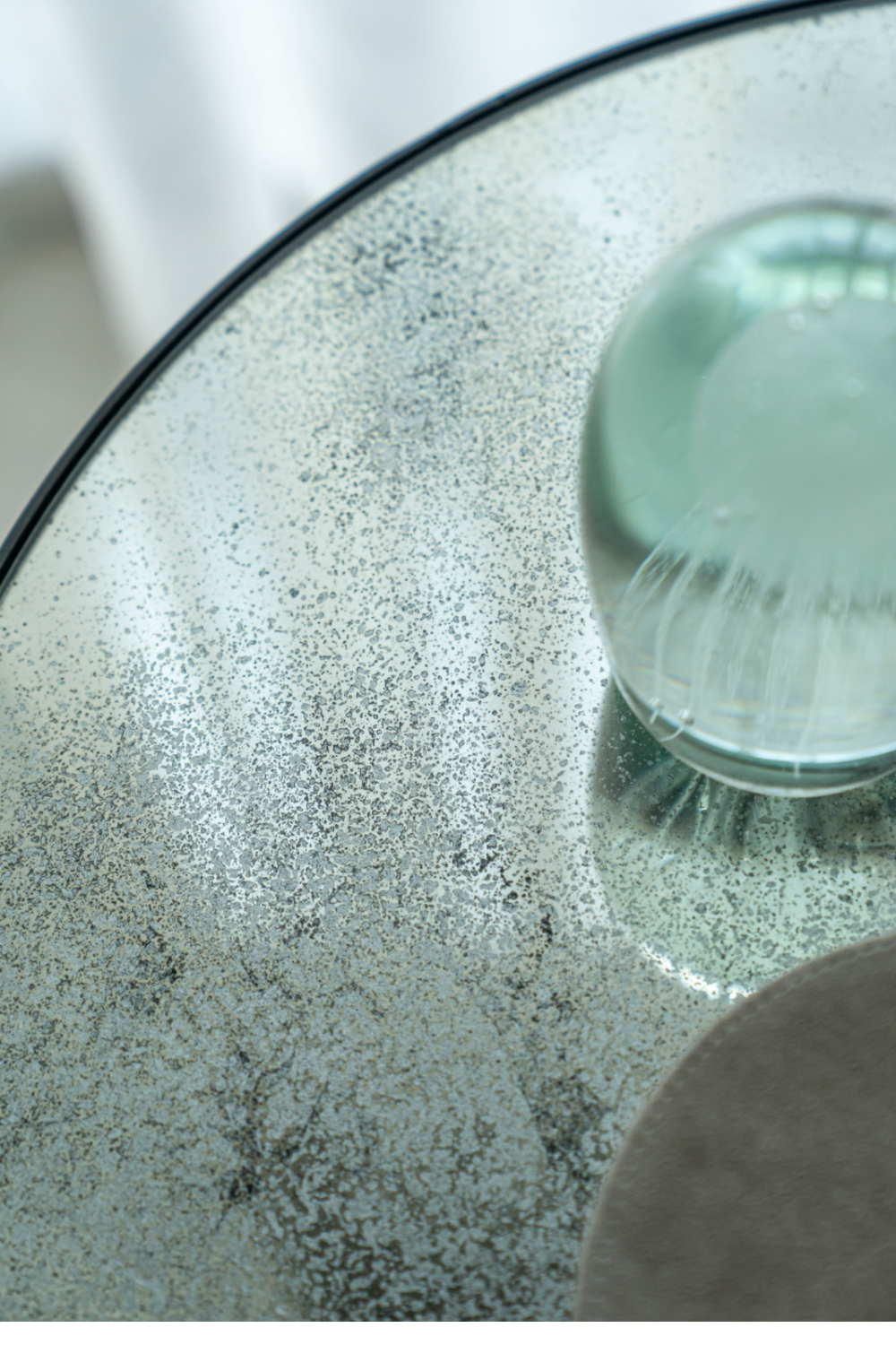 An accent piece that speaks volumes, the Round Nesting Side Table Set (2) is given a unique twist with a heavy aged mirror surface. The smart set seems to find its place in any space. Perched beside the sofa, sitting next to A bed, or as a complementary piece to a work of art, its adaptability offers many possibilities. Their nesting design not only saves space but also adds a touch of versatility to any room.