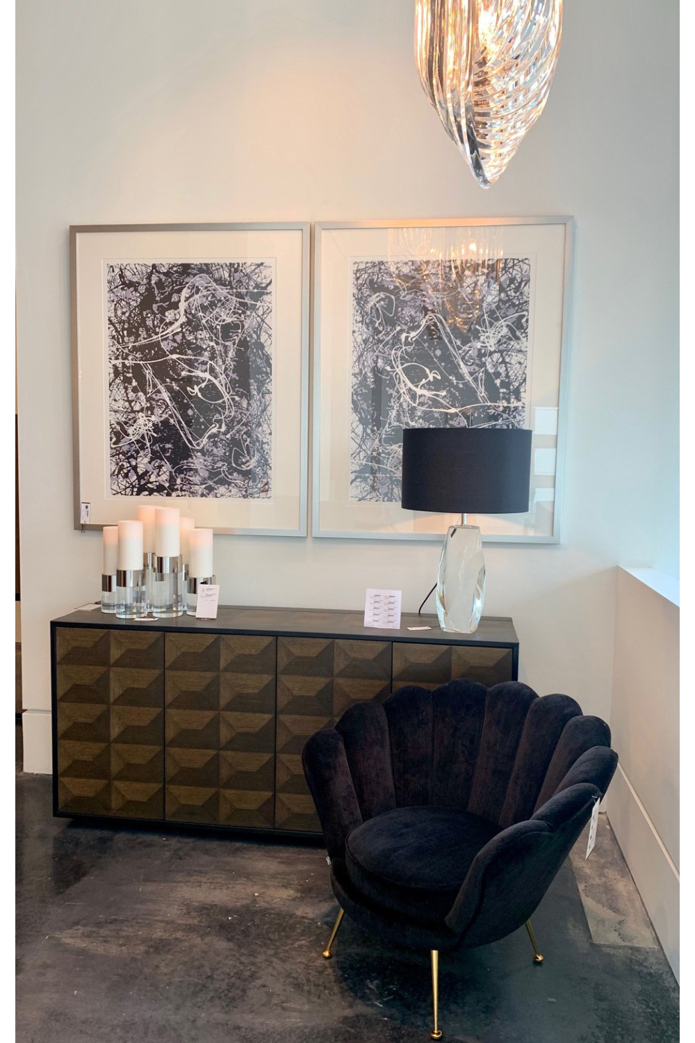 Handsome and understated, the oak veneer Gregorio Cabinet offers a stunning addition to any setting. Skillfully crafted with beautiful marquetry, this contemporary sideboard will add a touch of glamour to your home décor. Its exterior, including the four-door panels, features a refined geometric pattern that creates a 3D optical illusion, while its sturdy bronze finish frame has industrial appeal. Since the natural tones of the oak veneer go well with all colors, this retro-style furniture piece matches every interior scheme.