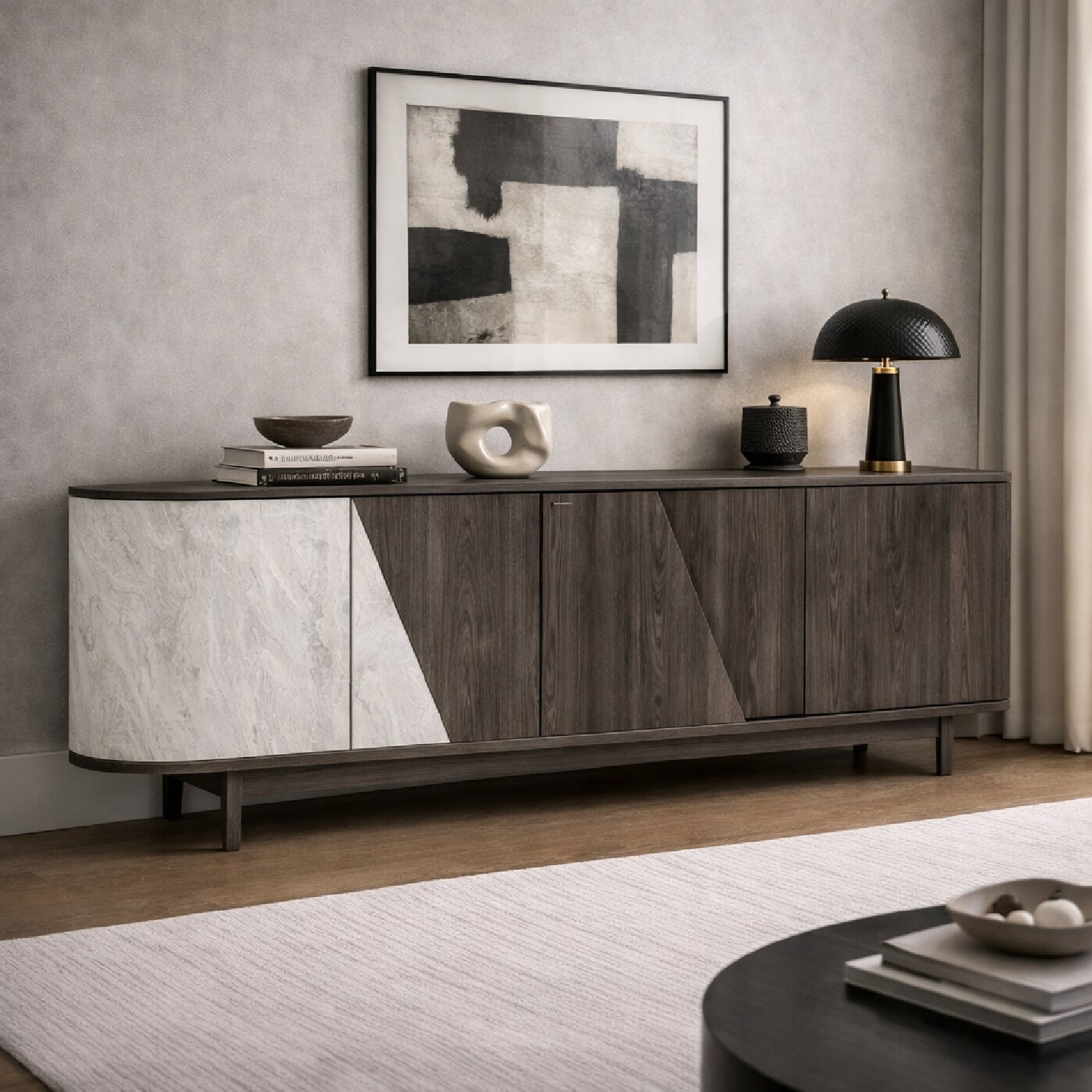The Nova Domus Cairo Buffet makes a perfect addition to your dining space and pairs perfectly with the Cairo Extendable Dining Table. The Gray Elm and White Marble Pattern Laminate adds texture to your dining space.