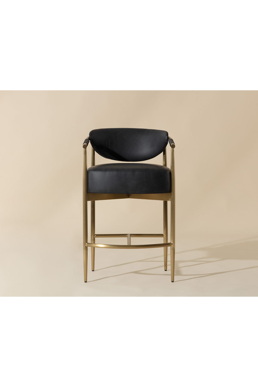 Every detail that makes up the handsome Heloise Counter Stool is designed with purpose. Faux leather upholstery and rope detailing are paired with powder-coated gold stainless steel for optimal style and comfort. Visible stitching on the seat and backrest accentuates the chair's smooth contours. This elegant counter stool will perfectly complement any dining space.