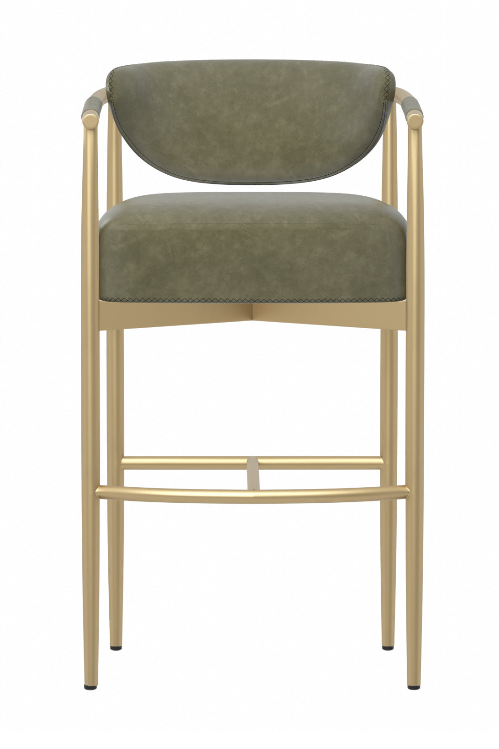 Every detail that makes up the handsome Heloise Barstool is designed with purpose. Milliken cognac faux leather upholstery and rope detailing is paired with powder-coated gold stainless steel for optimal style and comfort. Visible stitching on the seat and backrest accentuates the chair's smooth contours. This elegant barstool will perfectly complement any dining space.