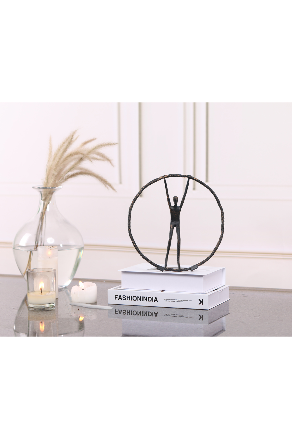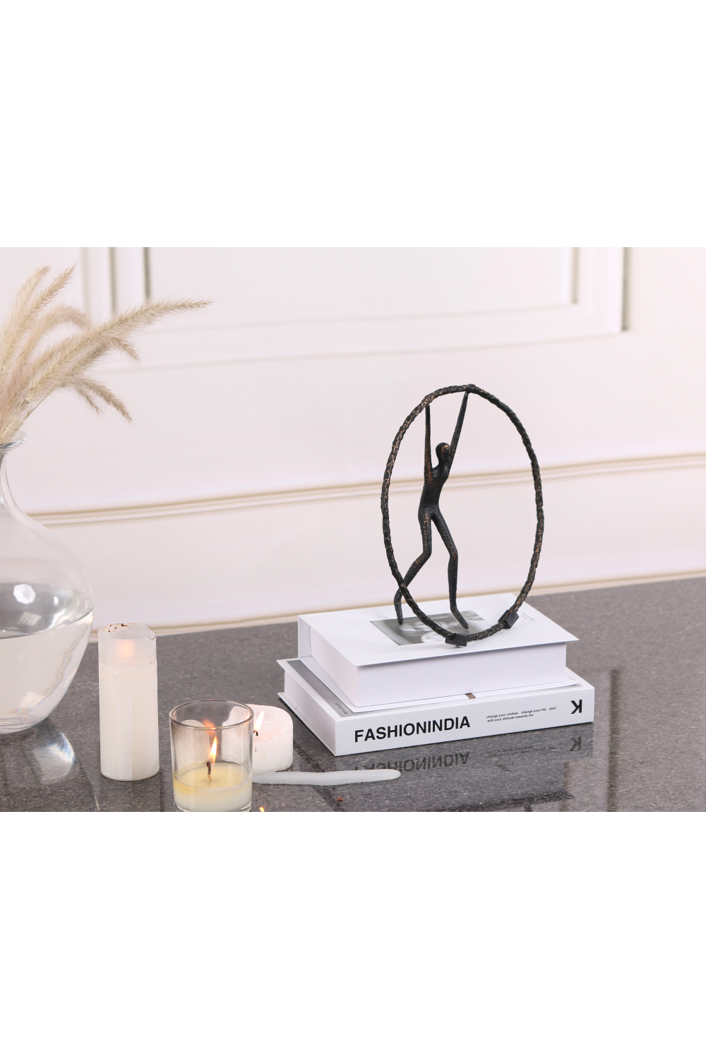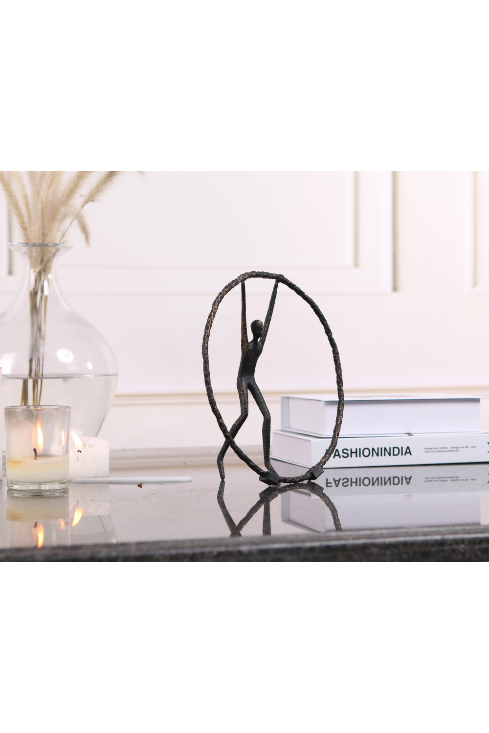 Captivating yet understated, Riley, a black zinc alloy sculpture, commands attention with its geometric abstract design. Its simple yet mesmerizing circle, with a person gracefully balancing atop, exudes a playful sophistication. This unique piece, suited for both residential and hospitality settings, adds a touch of intrigue to any living room lounge or study.