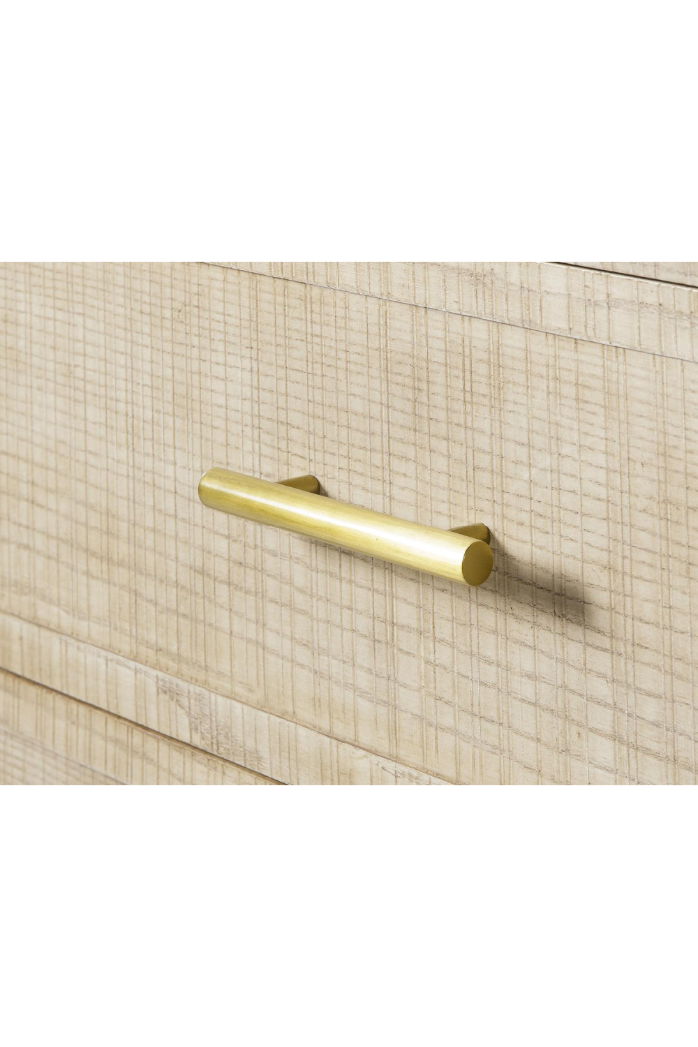 Create an air of sophistication in your bedroom with the Raffles chest of drawers, crafted from a textured multi-directional mix of ash solids and veneers that evoke the impression of a rough woven linen. Complete with 6 drawers finished with elegant brass handles for ample storage.