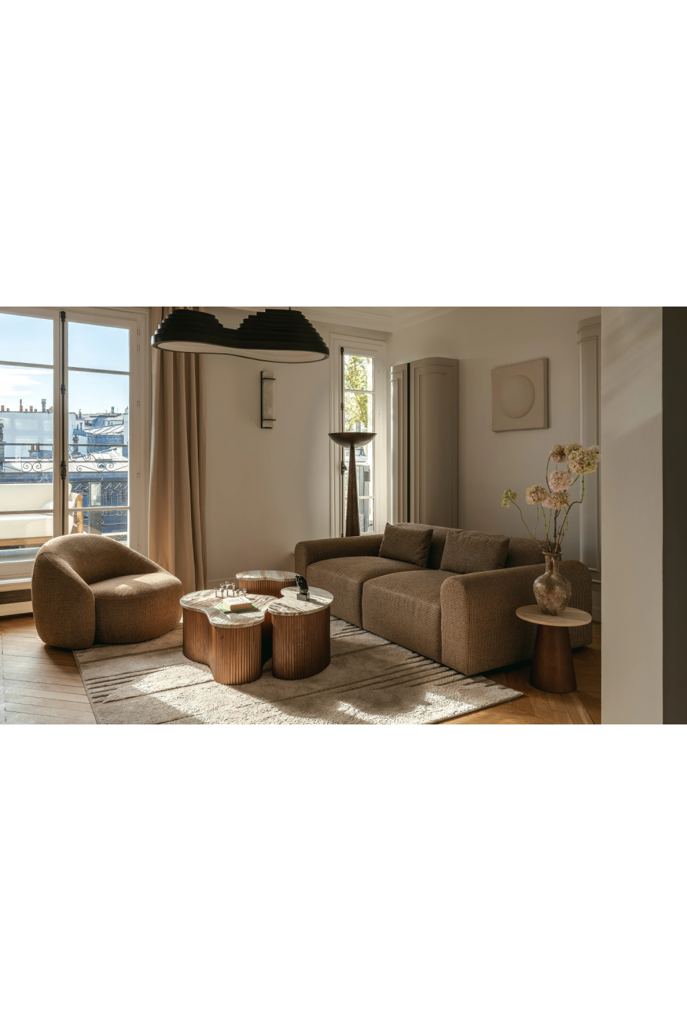 Inspired by the sea’s gentle motion, the Isleta Red Marble Side Table by NV Gallery features soft, wavy lines that bring a sense of calm and fluidity to any space. Used alone, the table makes a strong statement, while grouped together, they form a harmonious archipelago of organic shapes. The walnut-stained ash wood base contrasts beautifully with the Kanta marble top, whose subtle veining adds both elegance and durability. This Isleta table boasts a perfect balance of natural warmth and sophistication.