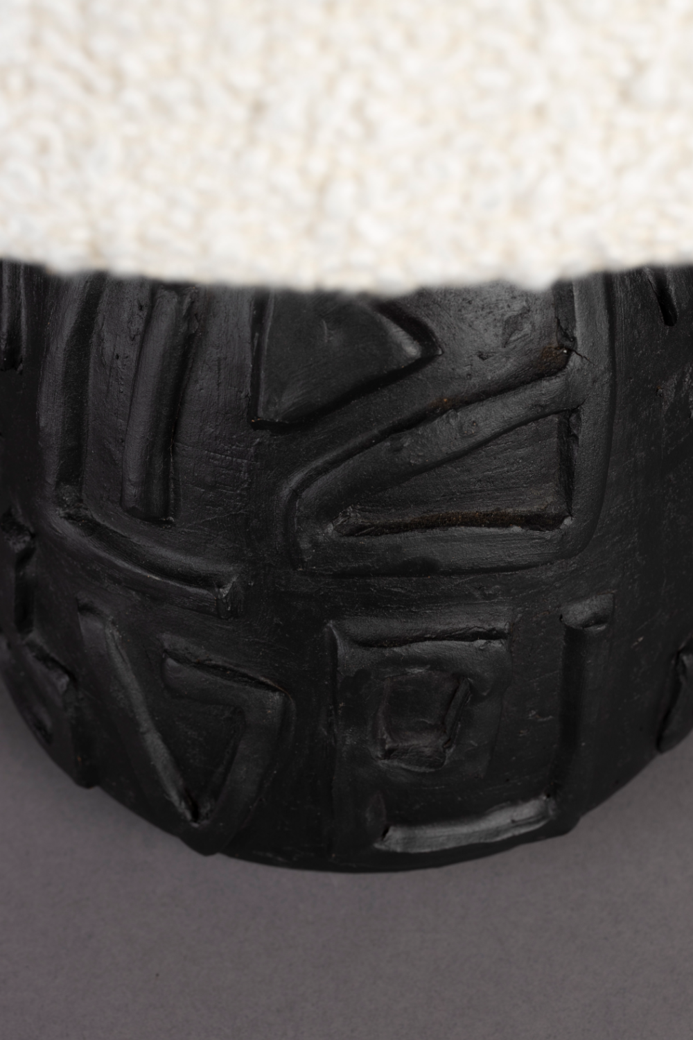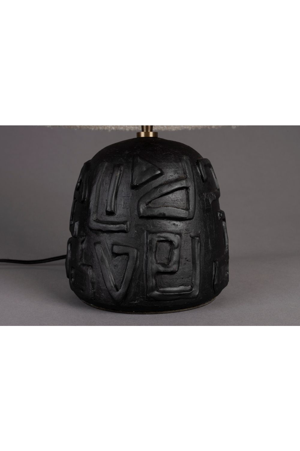 Illuminate your surroundings with the distinctive character and warm glow of Dutchbone's Table Lamp Renzo. Its white boucle fabric shade provides a cozy texture, complemented by the black terracotta body adorned with organic carvings that subtly spell out "LOVE." More than just a lamp, Renzo is a captivating statement piece that brings a touch of romance and style to any space.
