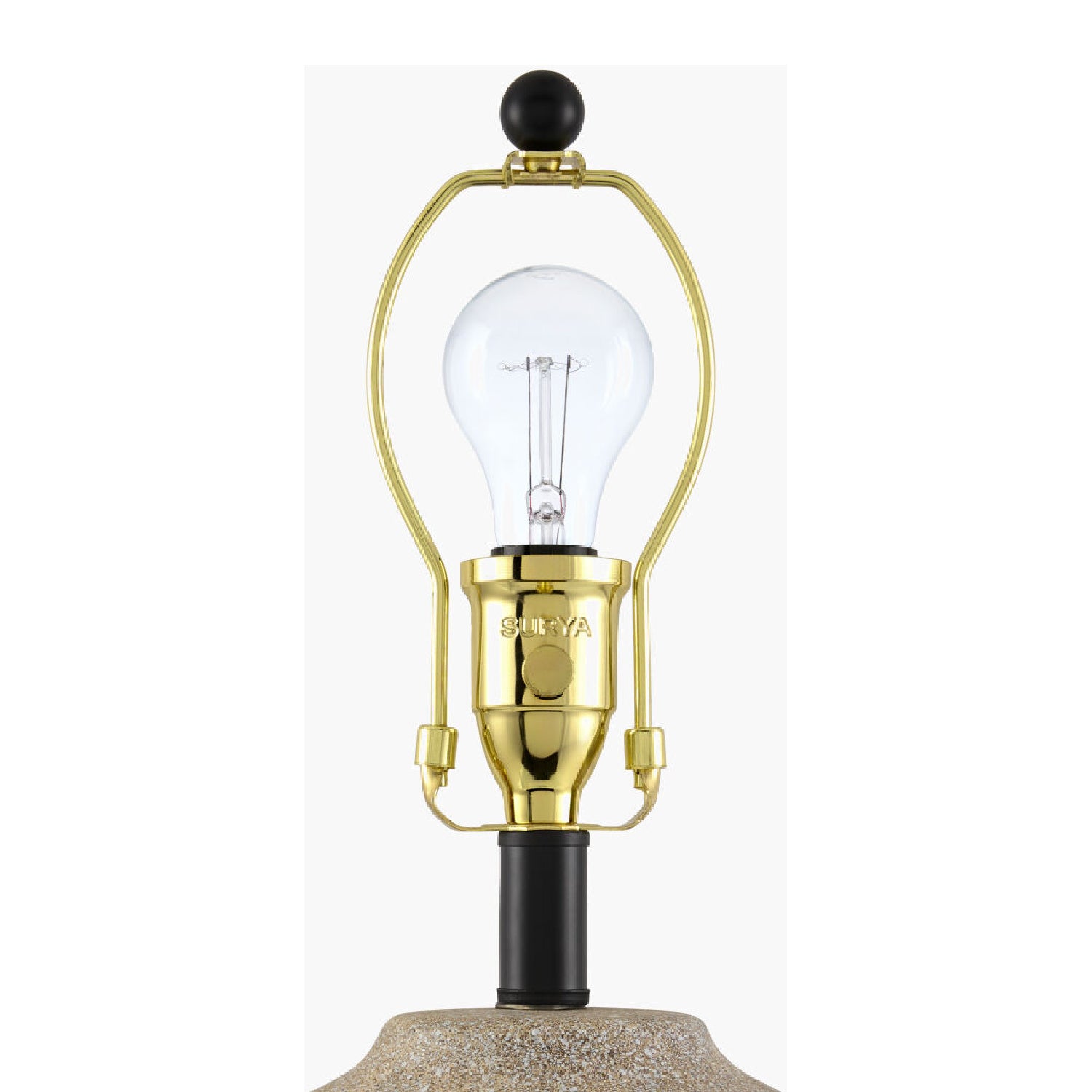 Illuminate your space with timeless elegance using the Araya accent table lamp. Standing at this traditional lamp boasts a beautifully crafted ceramic body that exudes classic charm. Topped with a refined linen shade, the lamp effortlessly diffuses light to create a warm and inviting ambiance in any room. The iron finial adds a touch of sophistication, completing the look with a subtle yet striking detail.