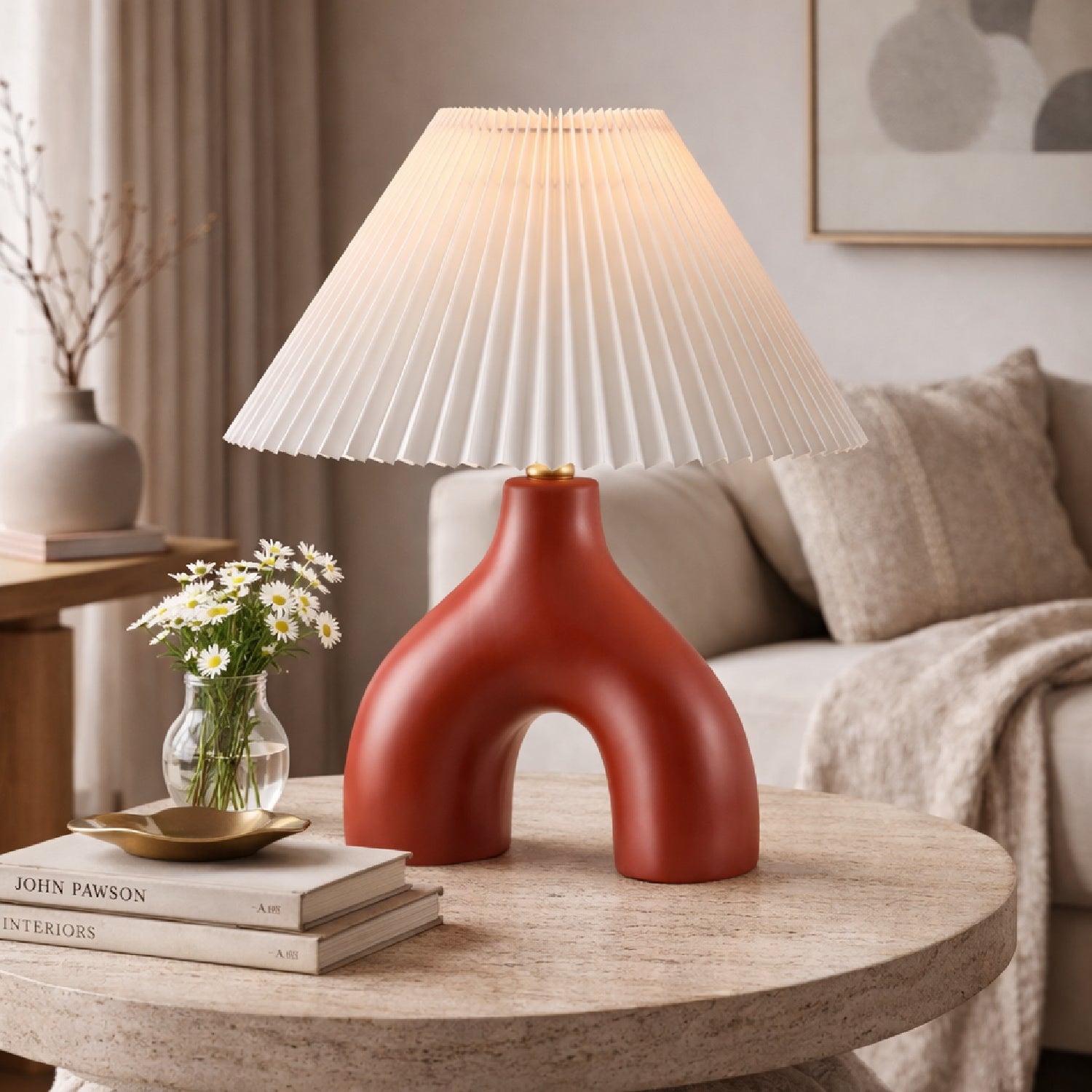Ceramic White Linen Table Lamp | Kuda Home Alvik