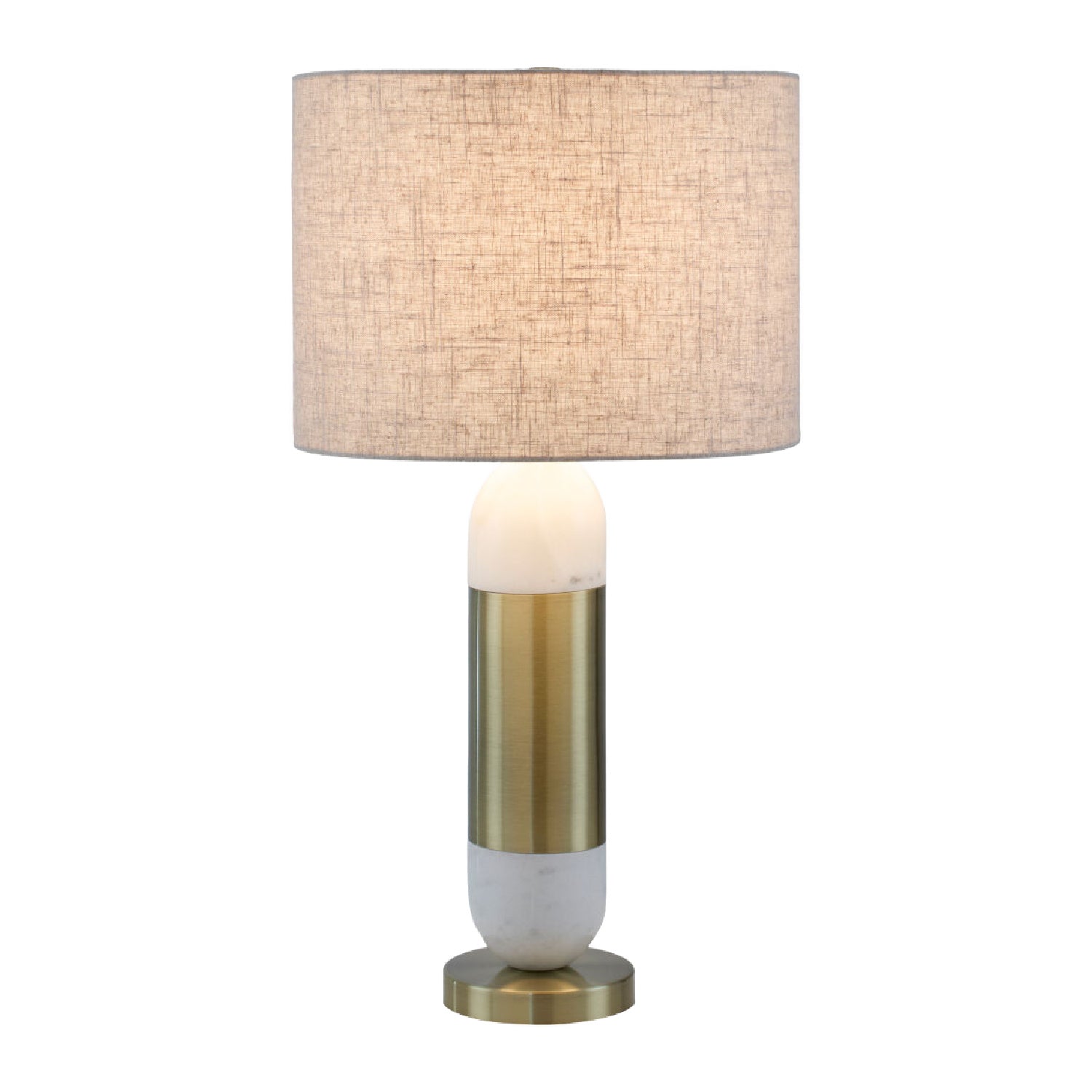 Indulge in luxury with the Carina accent table lamp. This chic lighting piece boasts a 29-inch tall body made of exquisite marble and iron, lending your space an air of opulence. The Iron base ensures stability while the linen exterior and polyester interior of the shade emit a soft, warm glow when lit. Not only is it a feast for the eyes but also easy to maintain ? just wipe clean with a dry cloth and avoid harsh cleaners to keep its finish pristine. Whether you're looking to elevate your room's decor or simply want a tasteful lighting solution, this stunning table lamp is sure to impress.