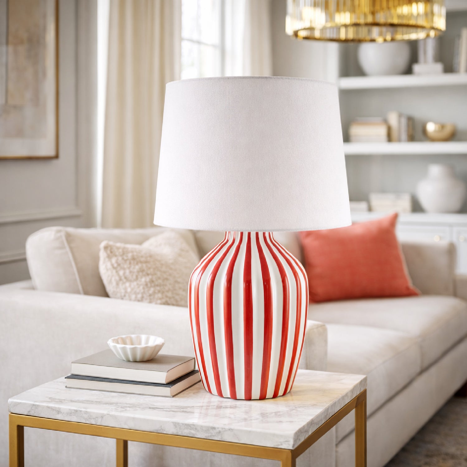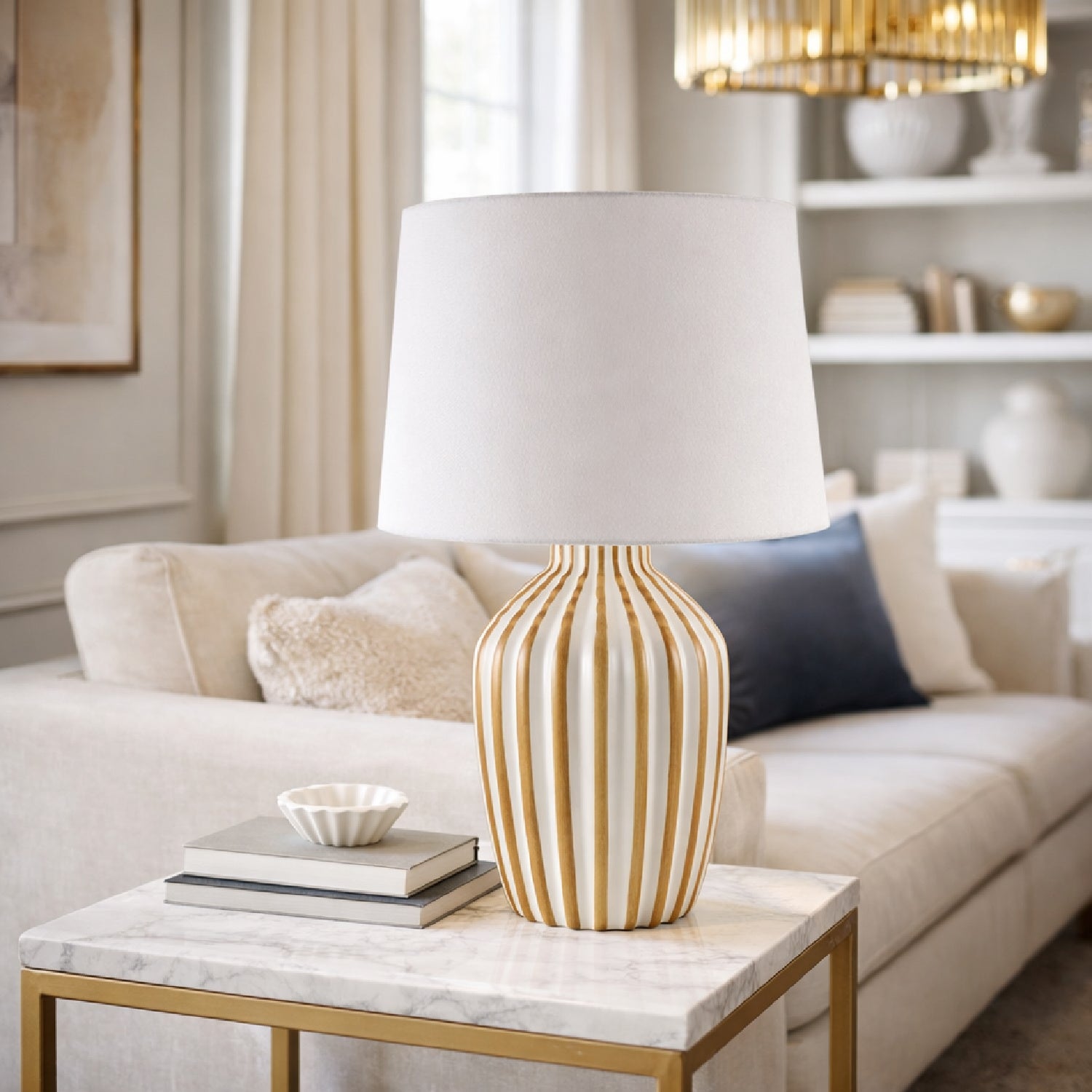 Lined Ceramic Accent Table Lamp | Kuda Home Stratos