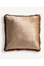 Beige Velvet Fringed Cushion | Vical Home Zaid