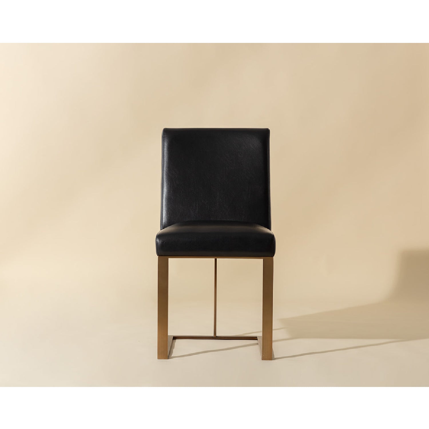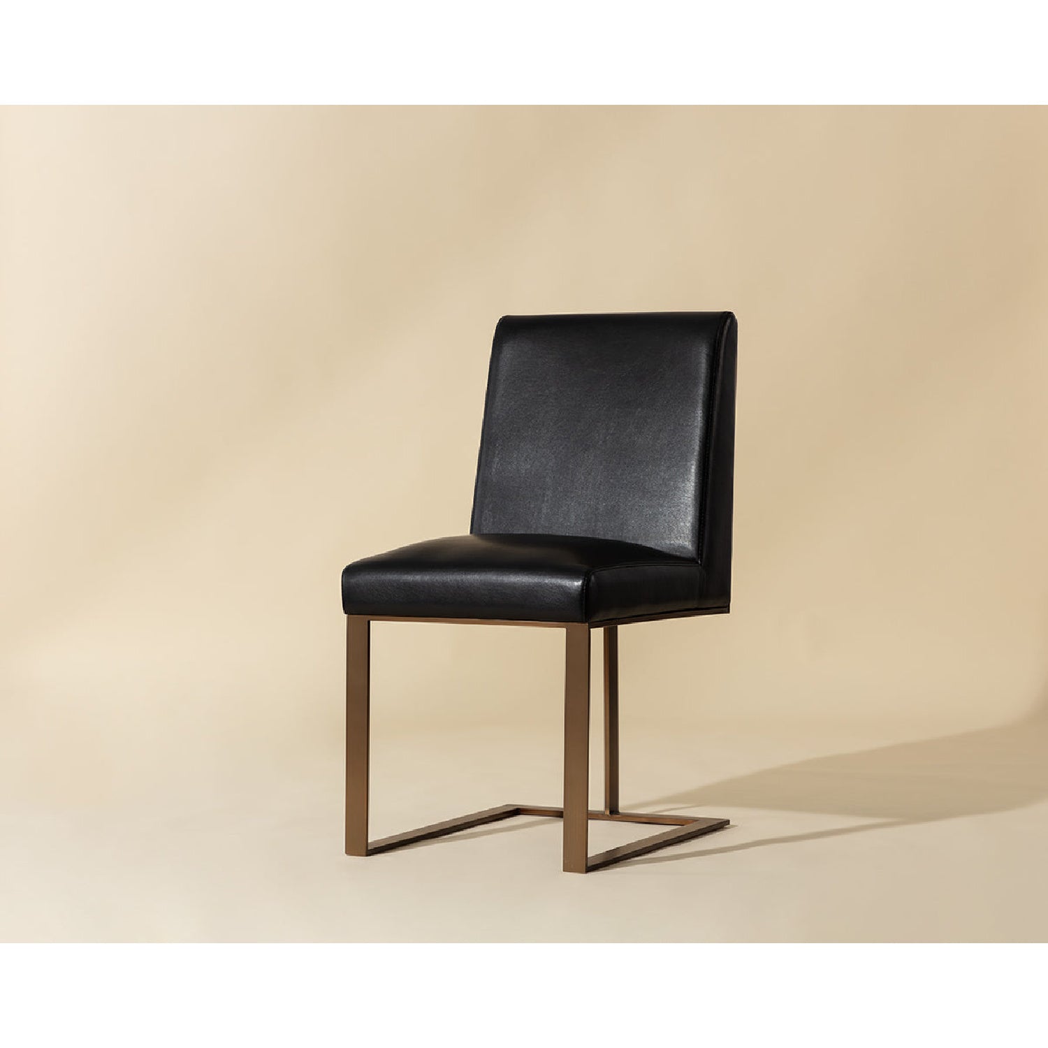 Stunning from all angles, this dining chai features an exposed brushed antique brass steel frame. A streamlined seat in cantina black bonded leather completes the look. Perfect for restaurants, bars and residential spaces. Handle with Care: This design has been crafted with bonded leather. Bonded leather is a blend of reconstituted leather and synthetic materials crafted to reflect the natural characteristics of leather; as such, color variations, markings, wrinkles, grooves and light scratches are acceptable and appreciated characteristics. No two pieces are alike. Visit our Product Care page for more information on how to ensure the lasting beauty of this piece.
