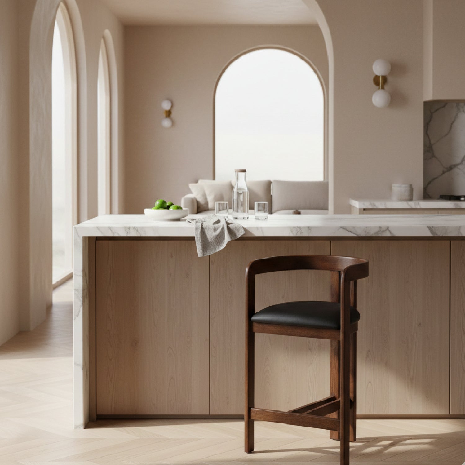 Introducing the Modrest Belton Counter Stool, a striking blend of modern design and comfort. This counter chair features a sleek black vegan leather seat that offers a luxurious feel, complemented by a sturdy brown oak frame. The minimalist curved back adds a touch of elegance, making it perfect for contemporary spaces. Its open design ensures movement and accessibility, ideal for kitchen islands or bar areas. A sophisticated addition to any home, the Modrest Belton combines style and functionality seamlessly.