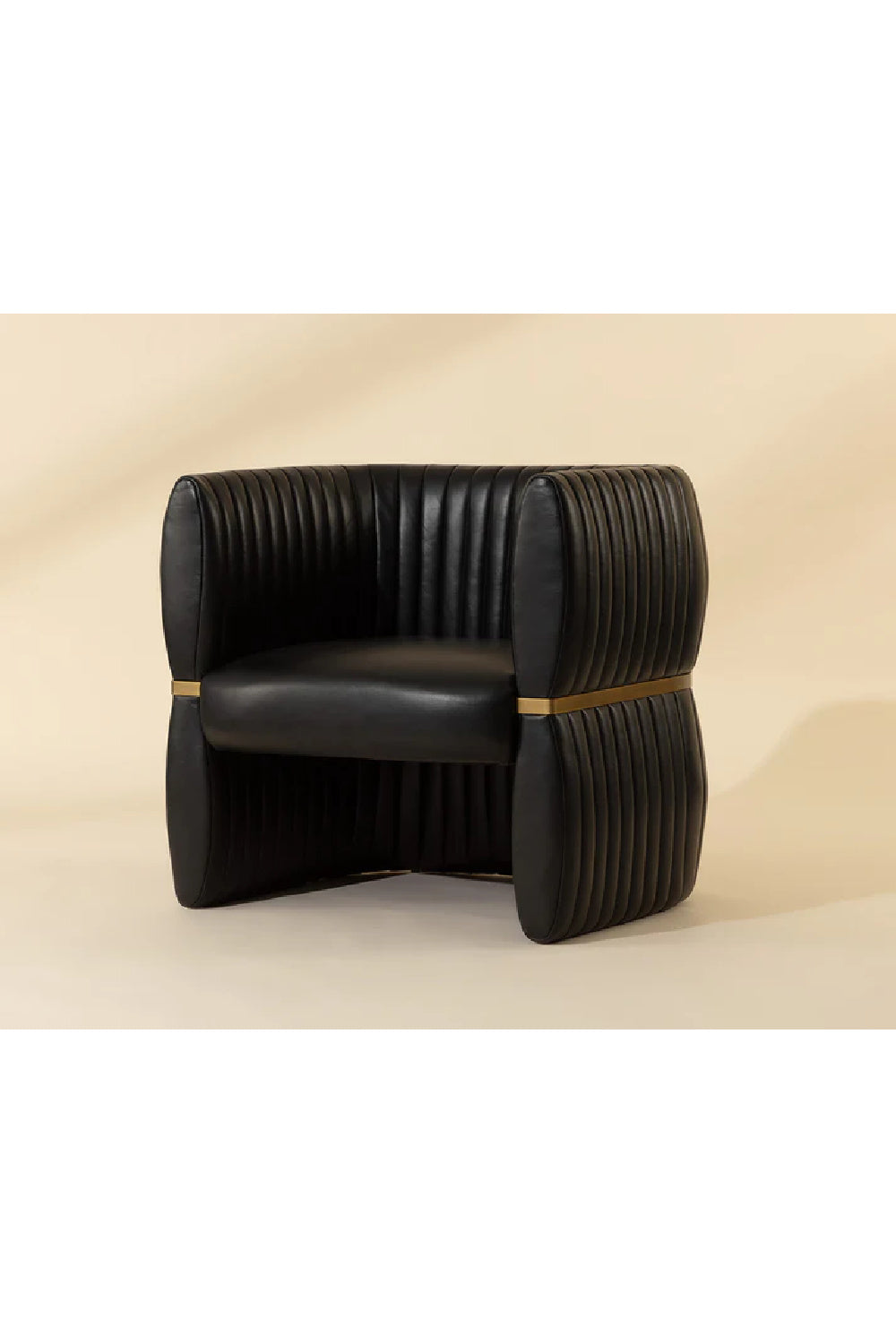 The Tryor Lounge Chair is defined by its contemporary style and enhanced proportions. Fully upholstered in our smooth top grain leather for a luxurious feel. An antique brass iron metal accent wraps around the chair to accentuate its channel design.