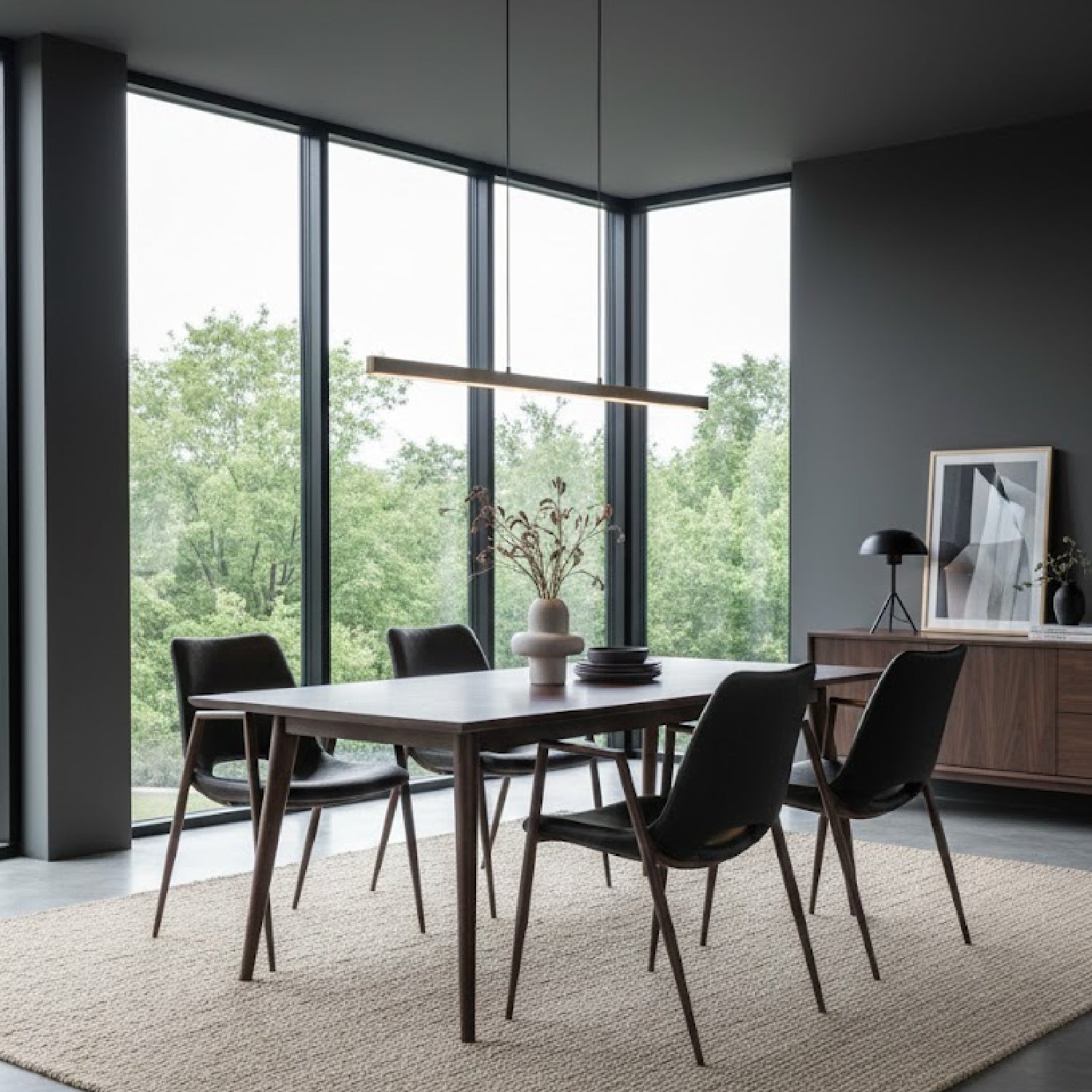 This dining chair has mid-century modern urban lines and looks great in any space, with a heavy-duty vinyl covering sturdy steel frame and finished legs in walnut heat-transfer vinyl-wrapped steel frame, fits in any home kitchen, dining area, or bar and is durable for hospitality use.