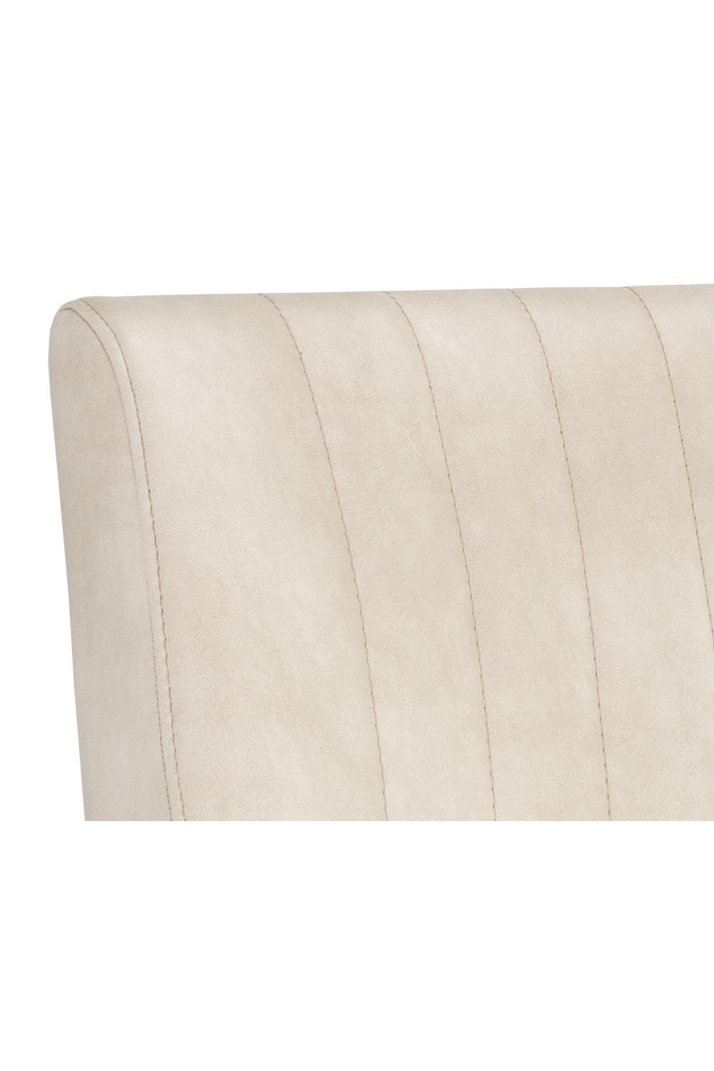 An urban designed stool featuring bold vertical channel tufting on the seat and back in bravo admiral faux leather. Finished with a rustic bronze steel frame and stretchers. Great for residential and commercial placements. Suitable for various dining, kitchen and bar spaces of all sizes.