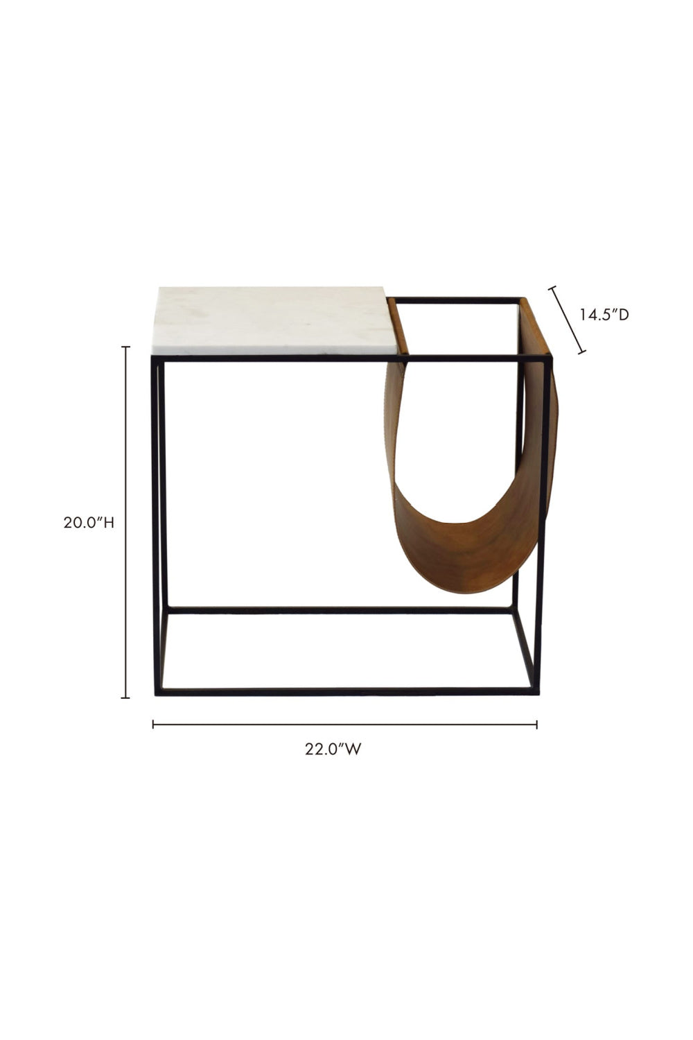 Sometimes you need a side table that can do more than hold a coffee and a lamp. The industrial-inspired Cave magazine rack is multifunctional and oh-so-stylish in a solid iron frame featuring a solid white marble top and graceful magazine sling in tan.