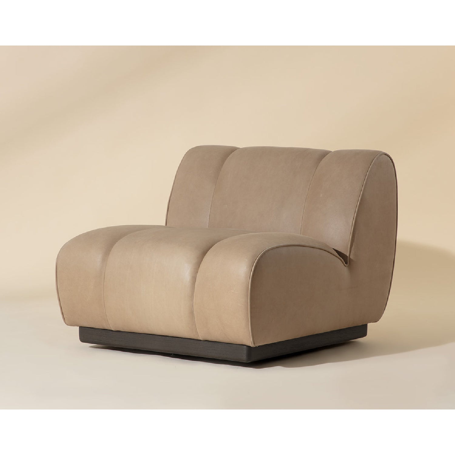 The elegant proportions and plush seating of the Blaise Swivel Lounge Chair invite you to indulge in luxurious comfort. Fully upholstered in our sahara sand aniline leather with a contrasting dark brown rubberwood base for a handsome addition to any space.