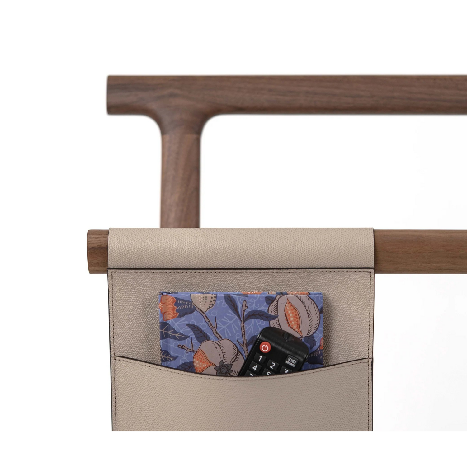 A splendid accent piece for a modern living room for keeping your cozy blankets neatly organized and easily accessible. Our Chelsea blanket rack has a sturdy walnut wood structure with a removable leather pocket; the perfect addition to any corner craving a touch of refinement.