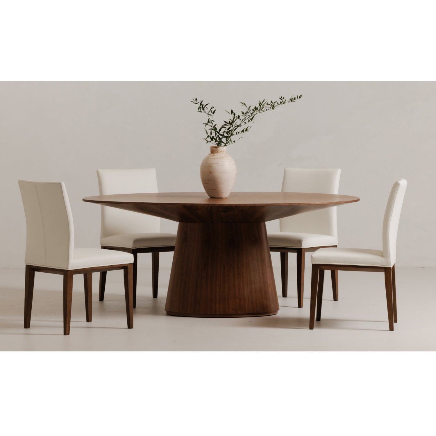 A sophisticated union of natural beauty and refined comfort, the Deco oak dining chair's adaptable design seamlessly complements both formal and casual settings. Its solid oak frame imparts a warm, organic ambiance while providing a sturdy and supportive foundation. Upholstered in sleek, easy-to-clean vegan leather, this dining chair exemplifies versatility and effortless elegance.