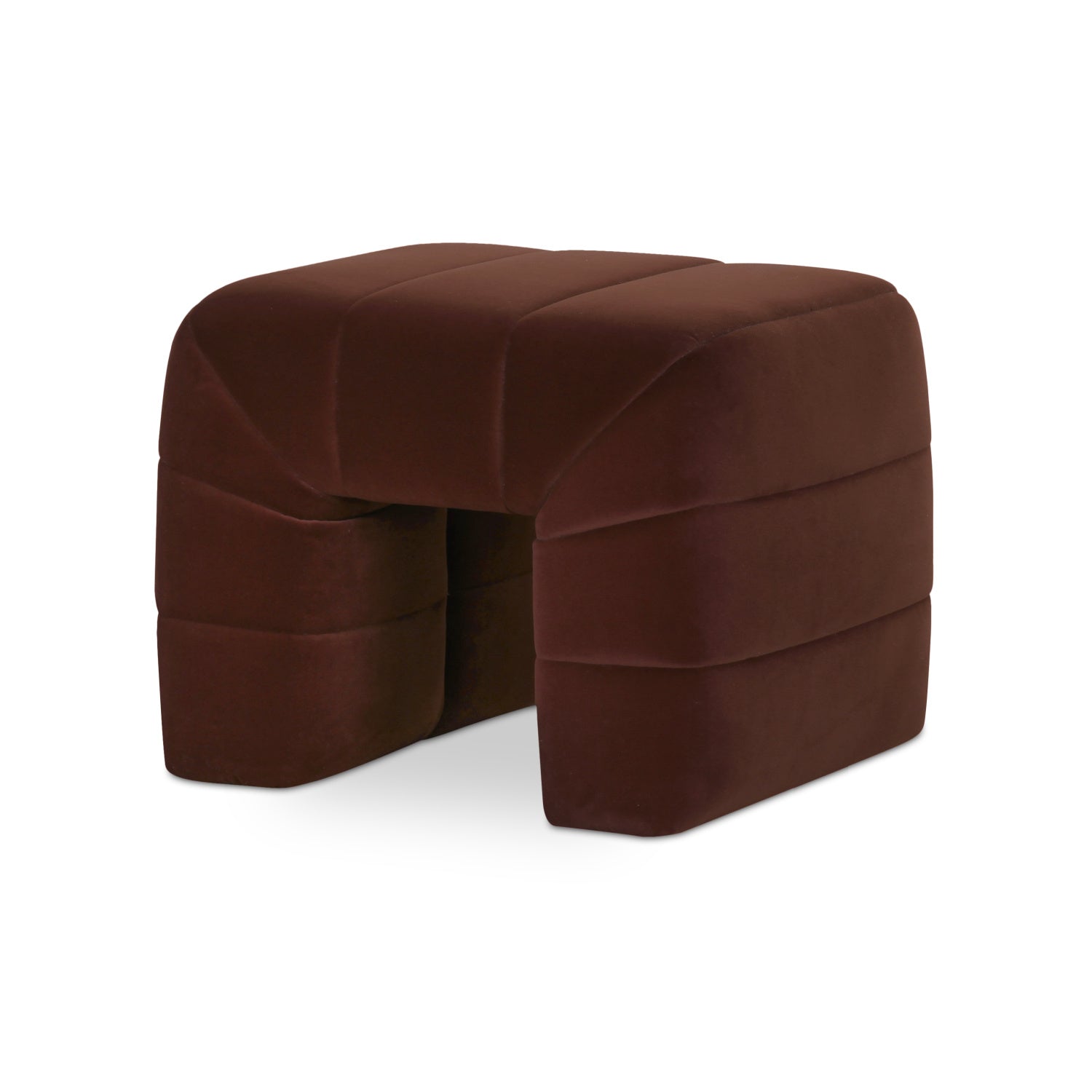 The Verity stool features a plump form enveloped in soft, flecked textured upholstery with warm tones for a touch of elegance. Wide channel detailing adds texture and visual interest, complemented by rich, warm tones that tell a story of comfort and coziness as the high-density foam seat provides a plush seating experience.