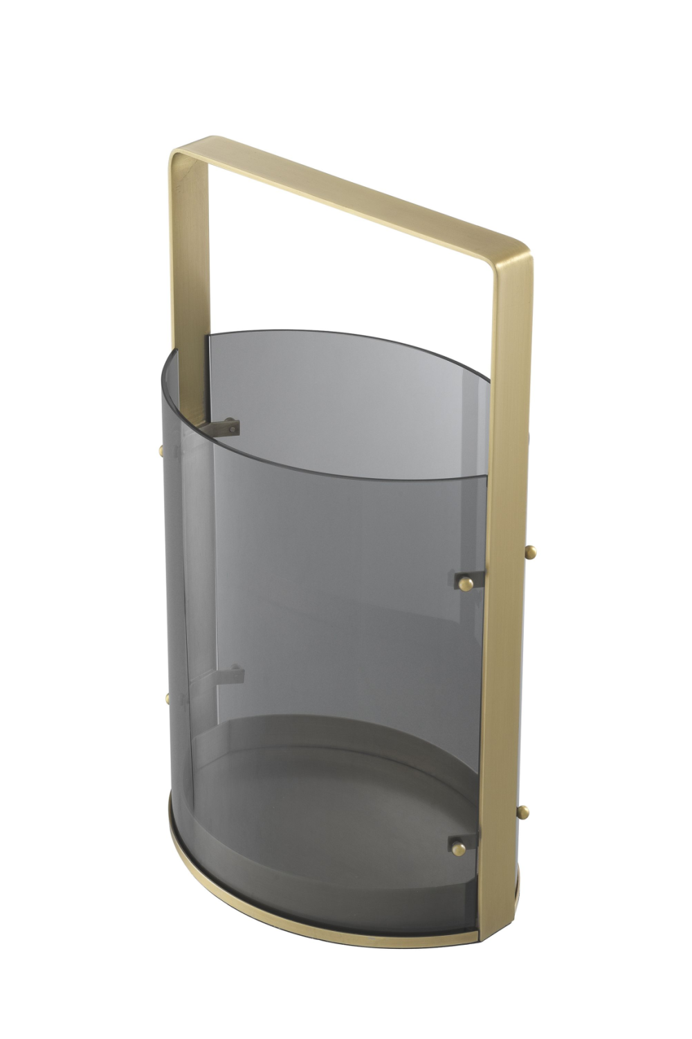 Create a warm and welcoming atmosphere with Hurricane Reid that can be arranged either individually or in groups. Just add a pillar candle and let the candlelight transform your house into a cosy home. Featuring an antique brass finish frame and a smoke glass shade, it also makes for a decorative object during the day.
