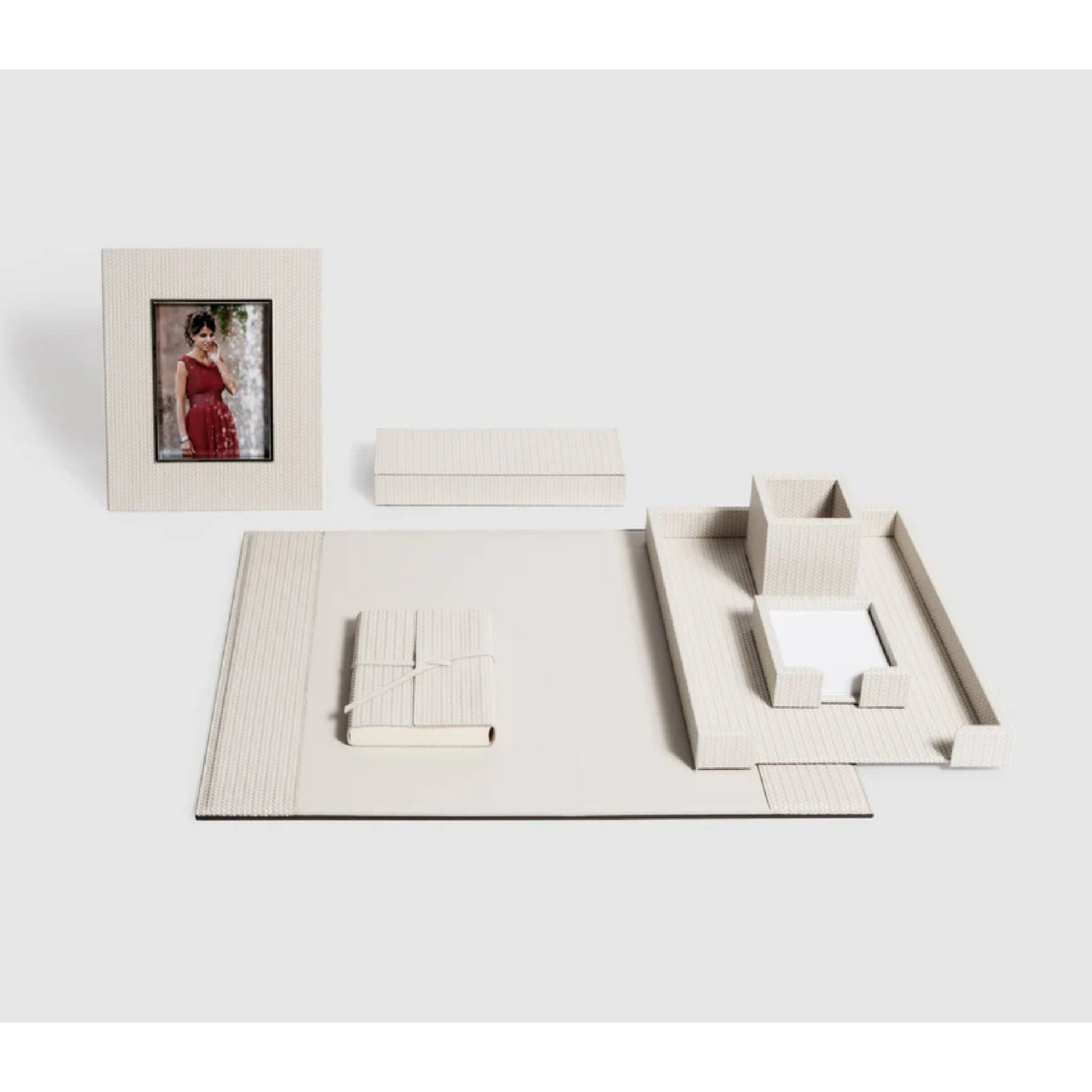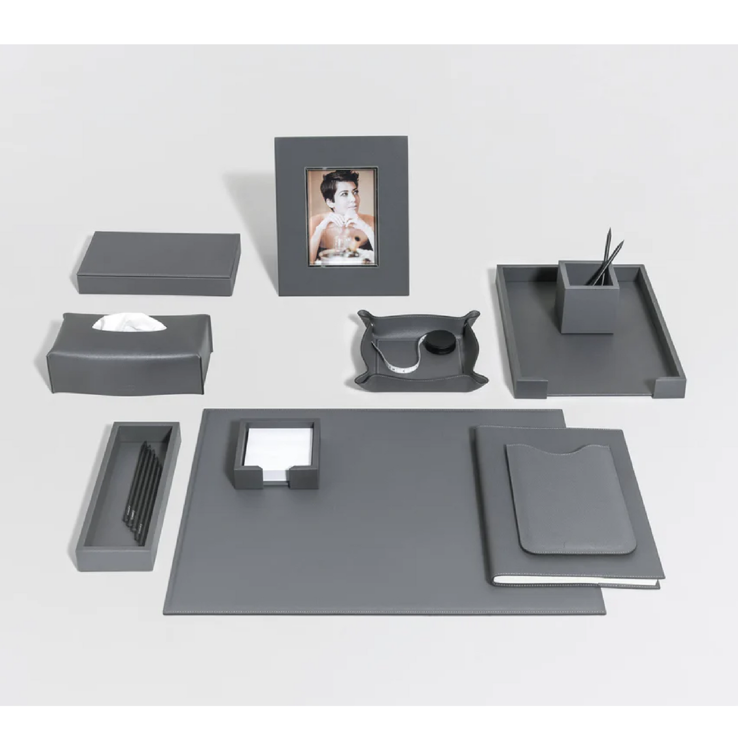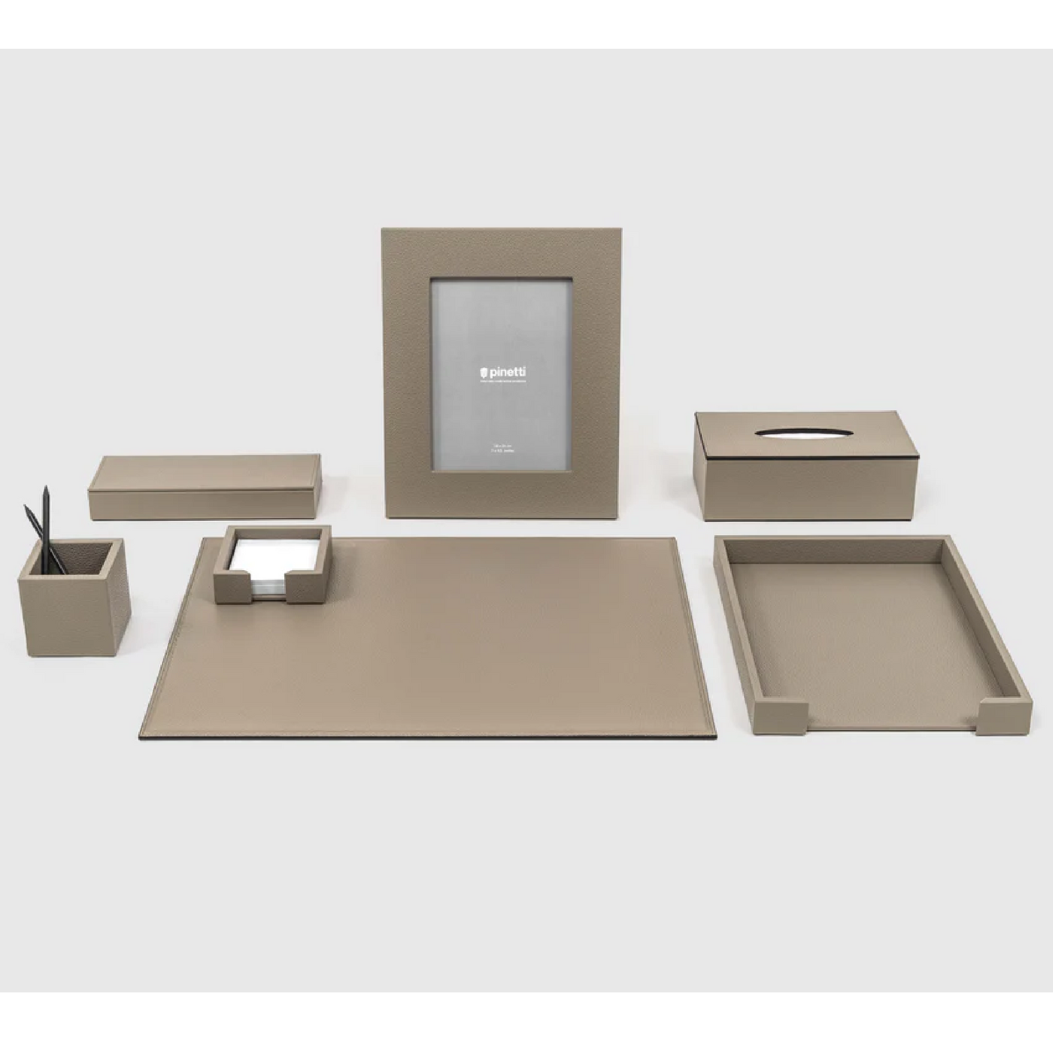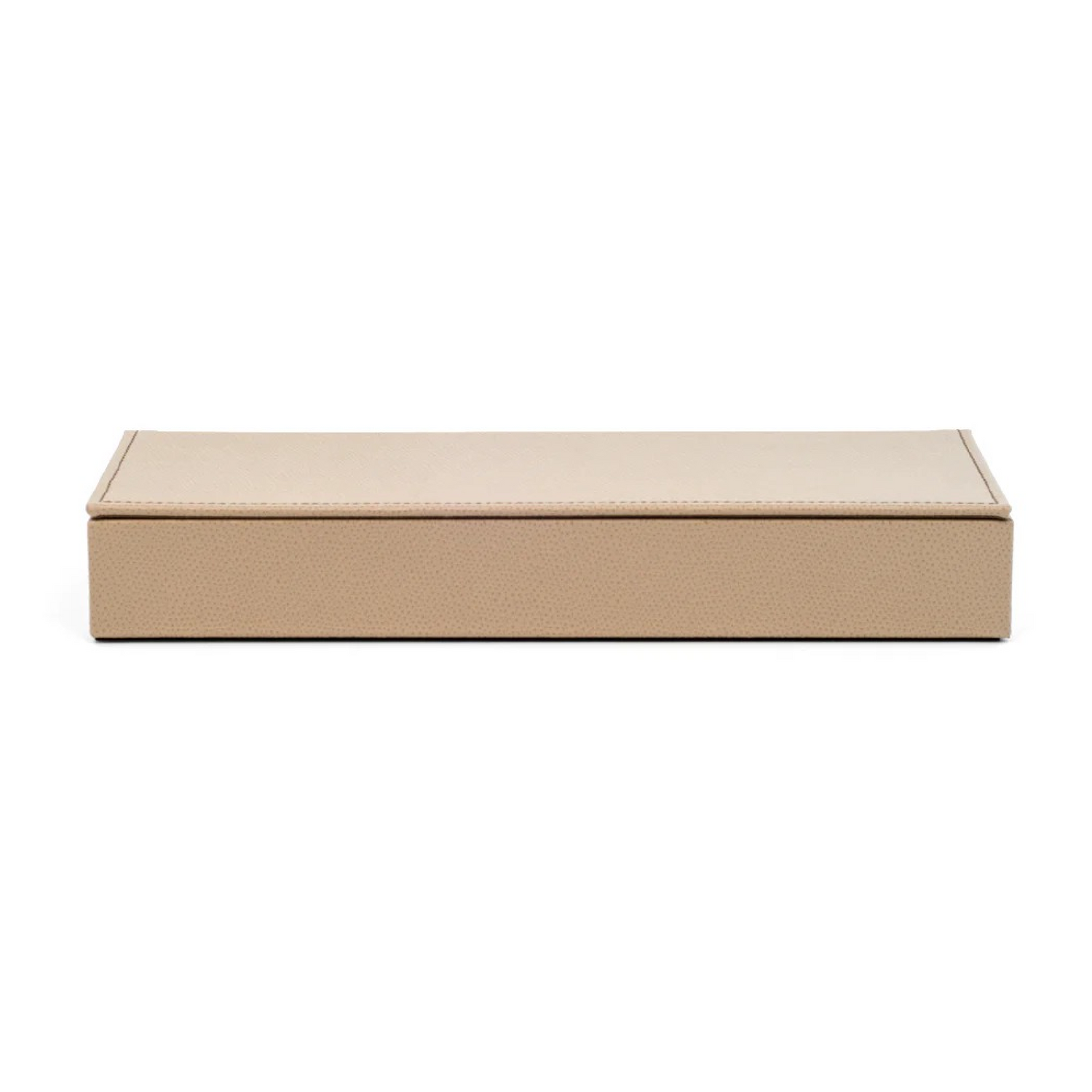 Elevate your workspace with the Leather Lidded Pencil Box by Pinetti Larry. Crafted from elegant calf leather with subtle tone-on-tone stitching, this sleek rectangular box offers refined storage for your writing tools. Its clean design keeps your desk tidy while adding a touch of sophistication. Pair it with matching office accessories to create a harmonious and organized environment.