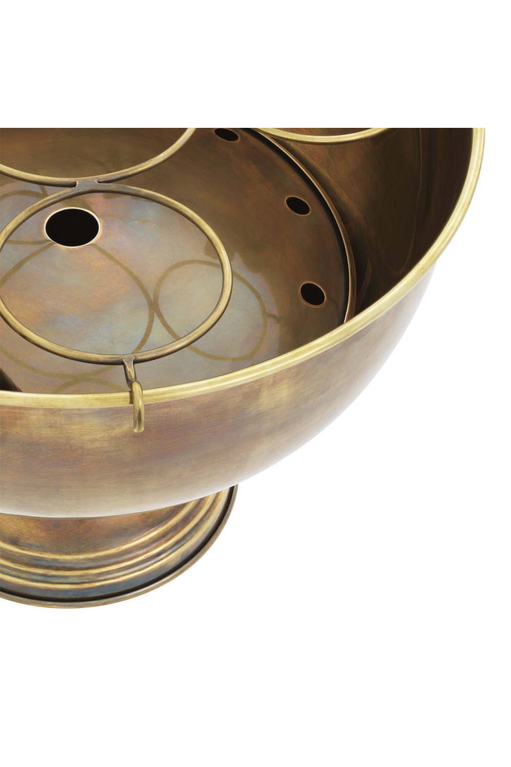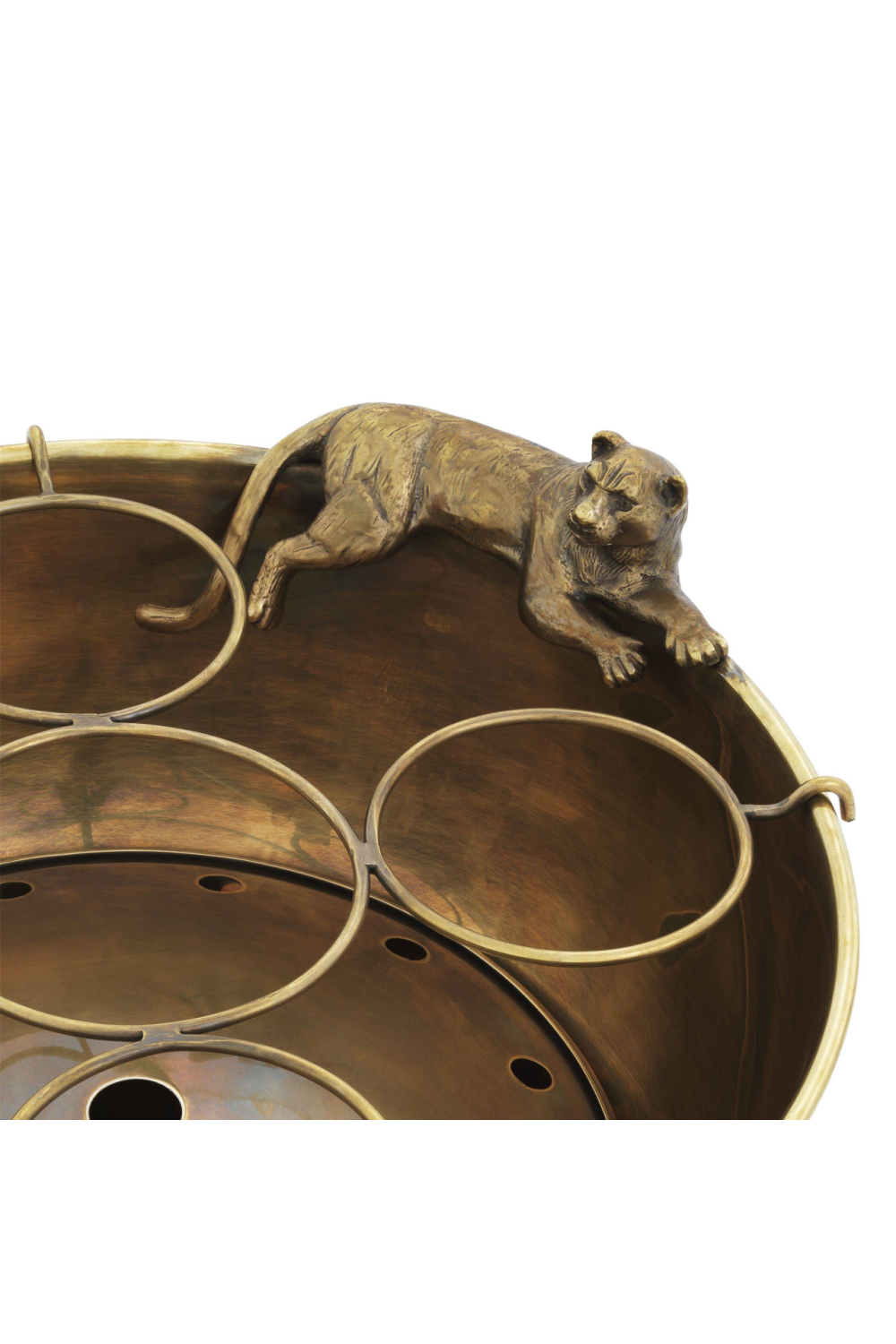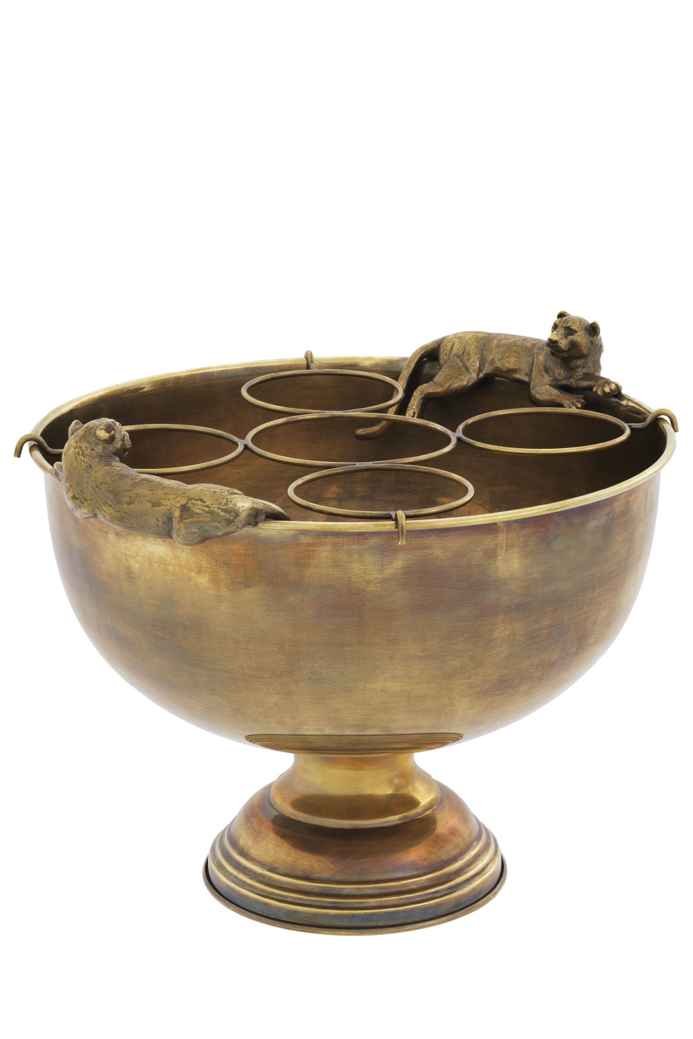 Keep your bubbles upright and at the perfect drinking temperature with the Jordan Champagne Cooler. This eye-catching ice bowl comes in nickel and vintage brass finishes. It features two handles in the shape of a puma and offers space for five bottles.