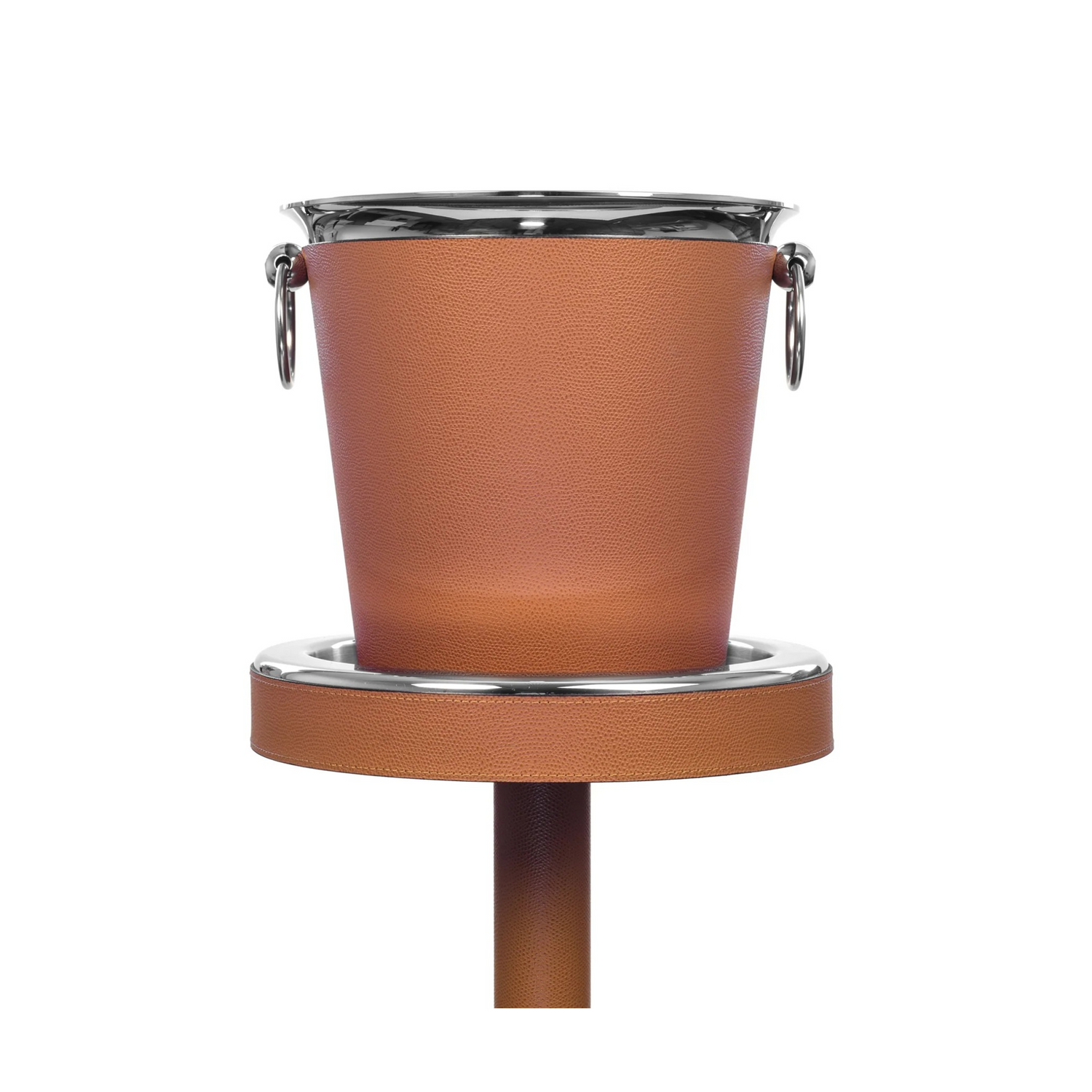 Elevate your wine experience with the Pinetti Stainless Steel Ice Bucket Stand, featuring a sleek satin finish and wrapped in soft calf leather. This elegant stand enhances tableside service while securely holding your ice bucket to keep your wine or champagne perfectly chilled. A refined addition for those who appreciate both style and function.