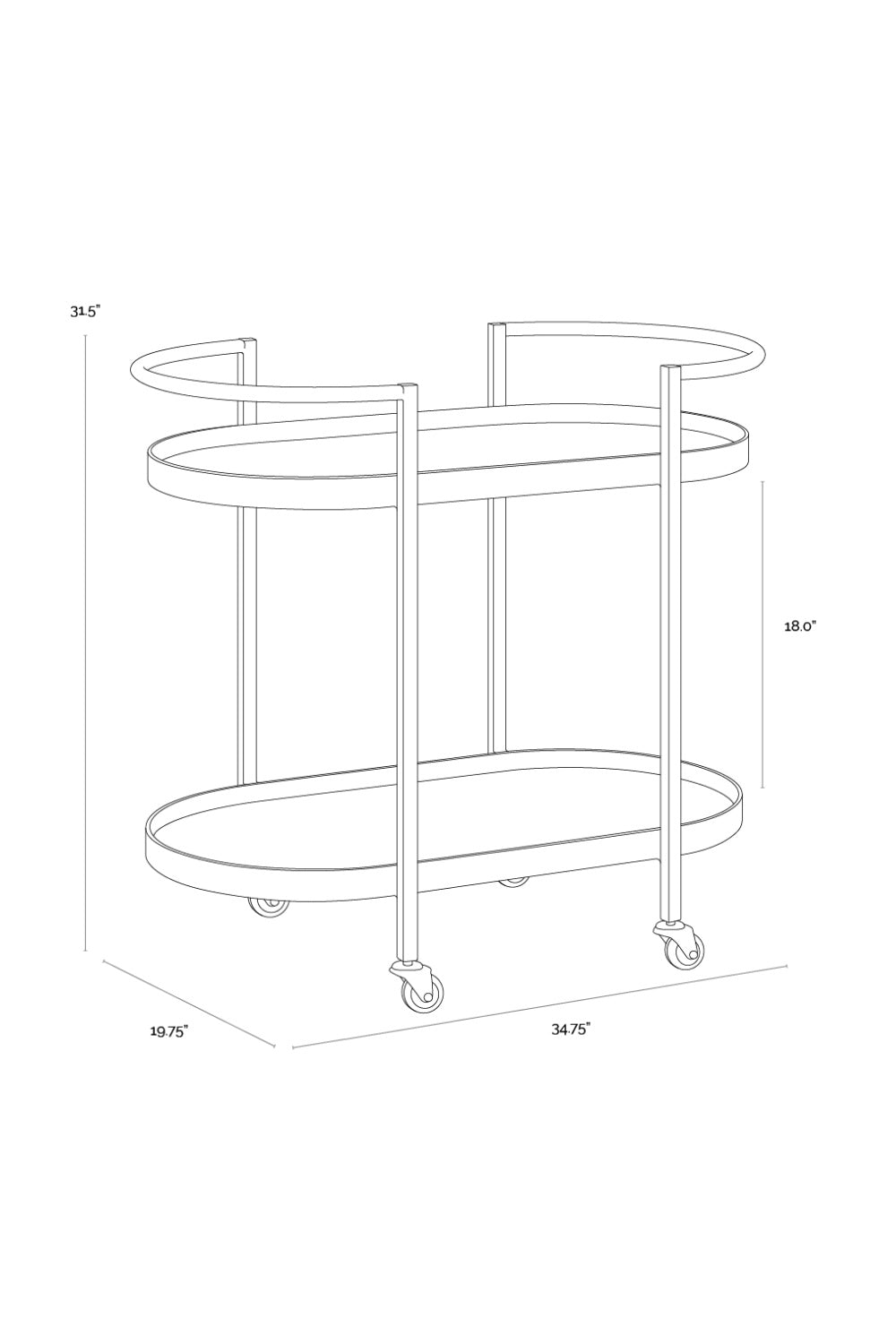 The Bartlett Bar Cart brings a glamorous addition to any dining space. Black mirrored shelves beautifully complement the antique brass frame for a classic look.